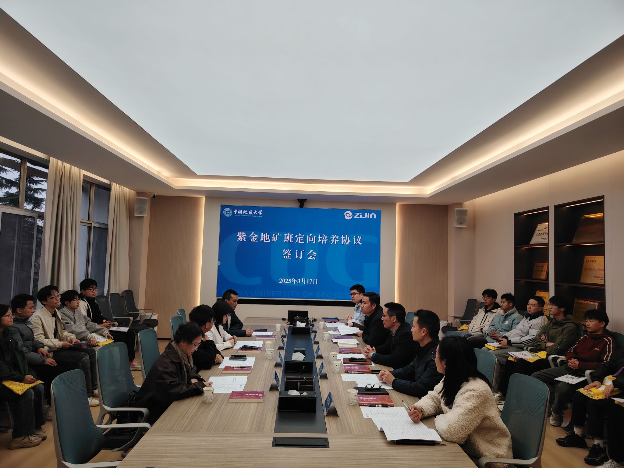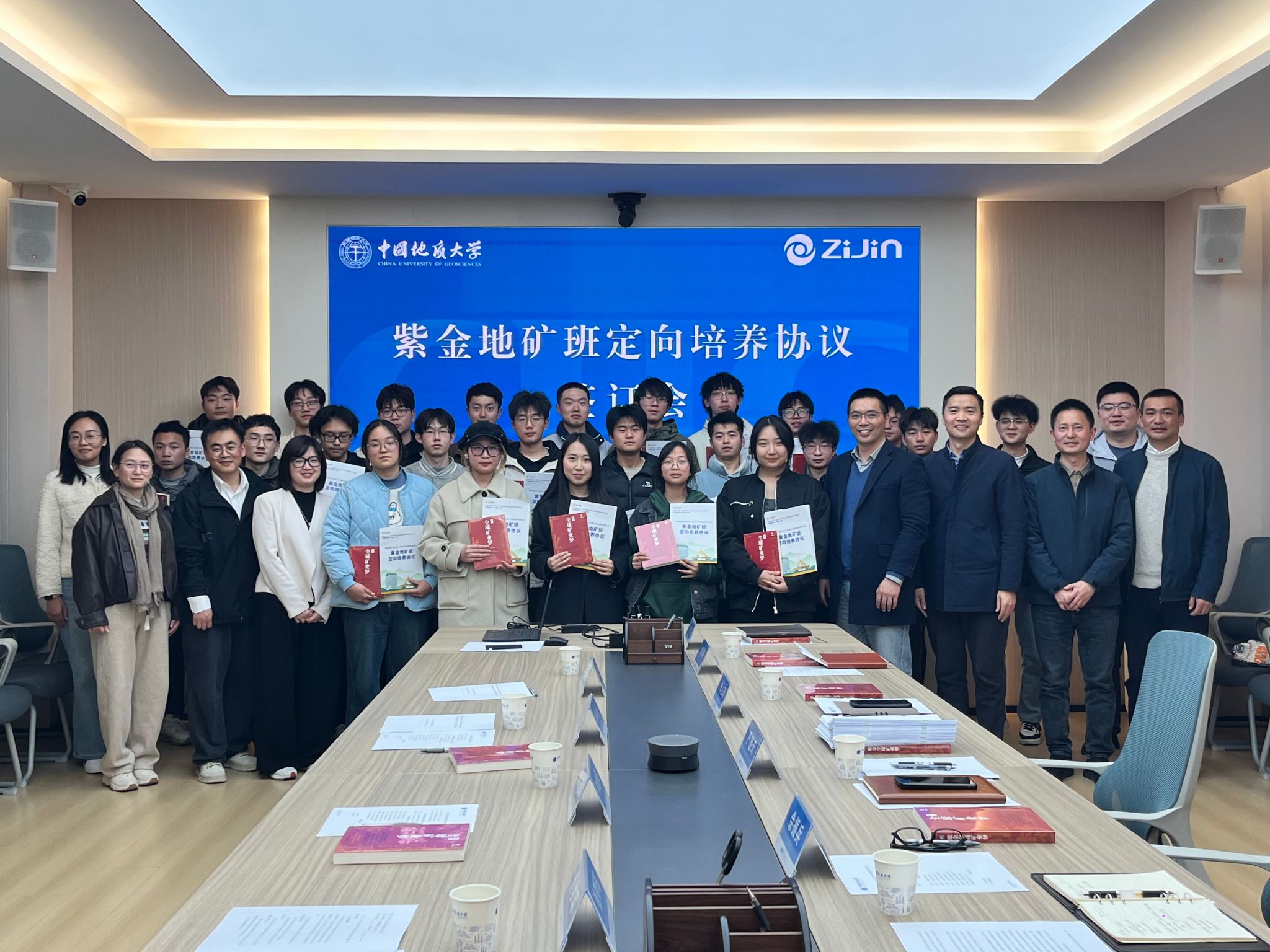 (通讯 柯蓝 李娜娜 摄影 卢倩)2025年3月17日,紫金地矿班定向培养协议签订会在主楼330会议室如期举行。紫金矿业集团股份有限公司人力资源部综合与培训处处长林晞、技能人才处副处长冉金海,本科生院副经理何卫华、肖梦琼,地球科学公司副经理佘振兵、辅导员滕笑丽,William威廉英国官网经理严德天、副经理李占轲、教务科科长杨春艳、辅导员彭鑫和2024年紫金地矿班全体同学参加会议。会议由李占轲主持。