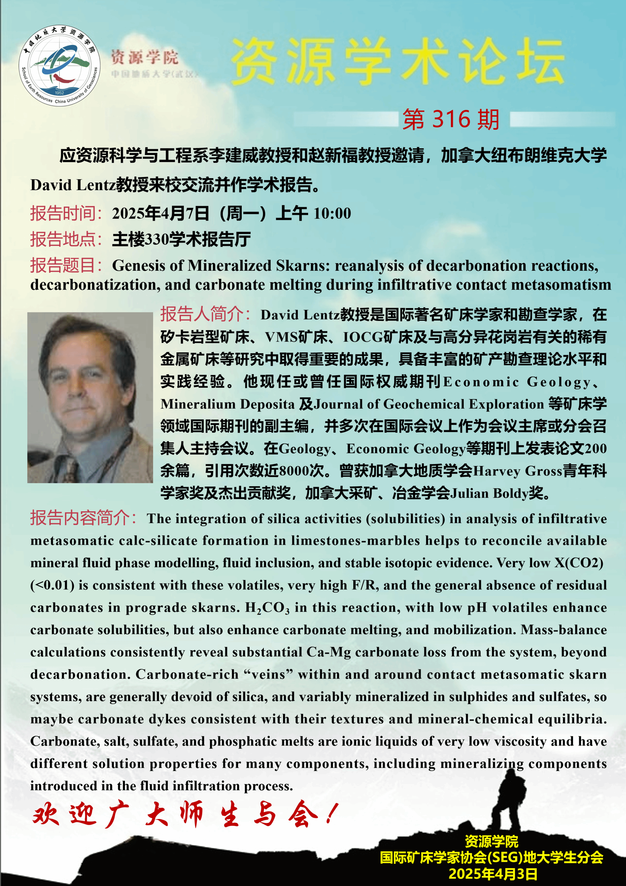 【4月7日】第316期资源学术论坛:David Lentz学术报告