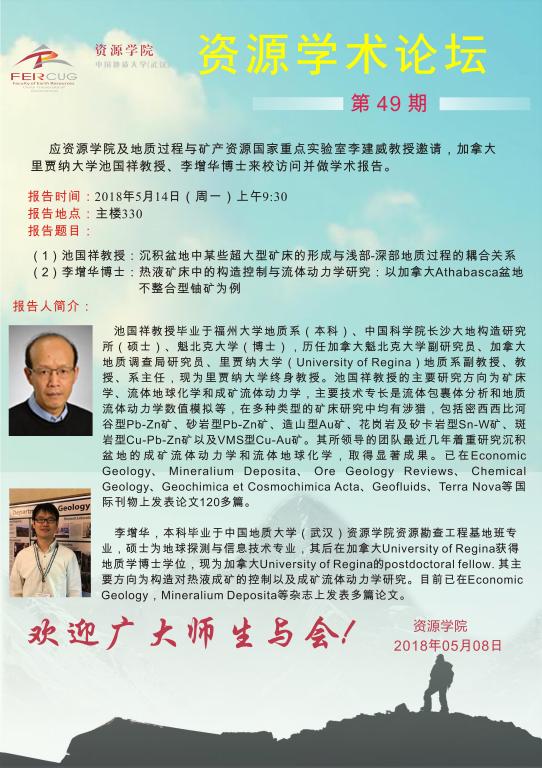 [5月14日]第49期资源学术论坛:池国祥、李增华学术报告