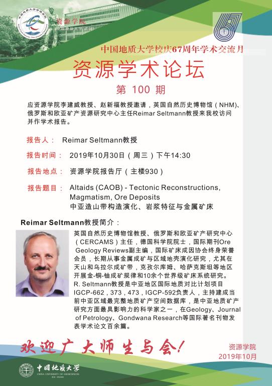 【10月30日】第100期资源学术论坛:Reimar Seltmann学术报告