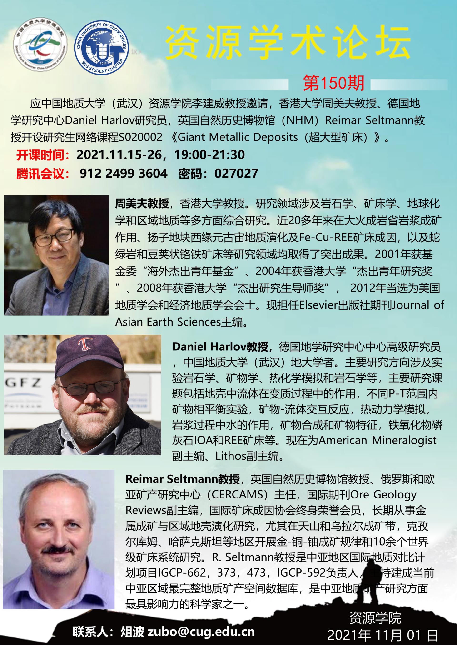 【11月15-26日】第150期资源学术论坛:Giant Metallic Deposits(超大型矿床)