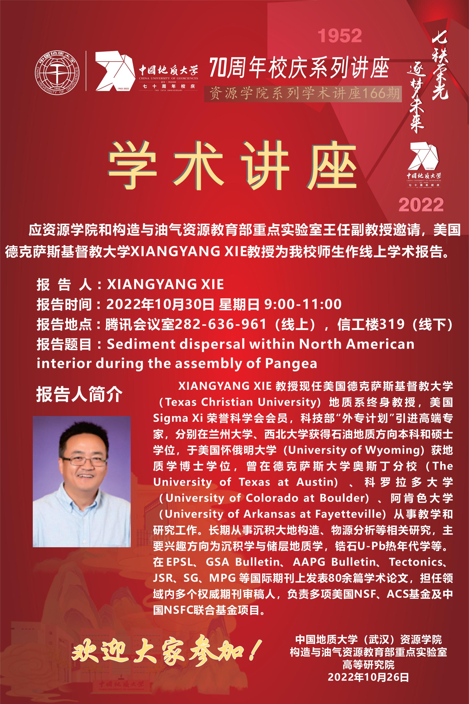 【10月30日】第166期资源学术论坛:XIANGYANG XIE学术报告