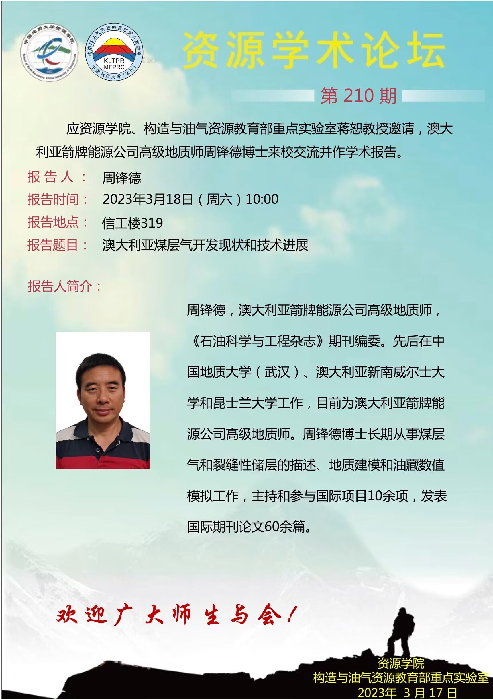 【3月18日】第210期资源学术论坛:周锋德学术报告