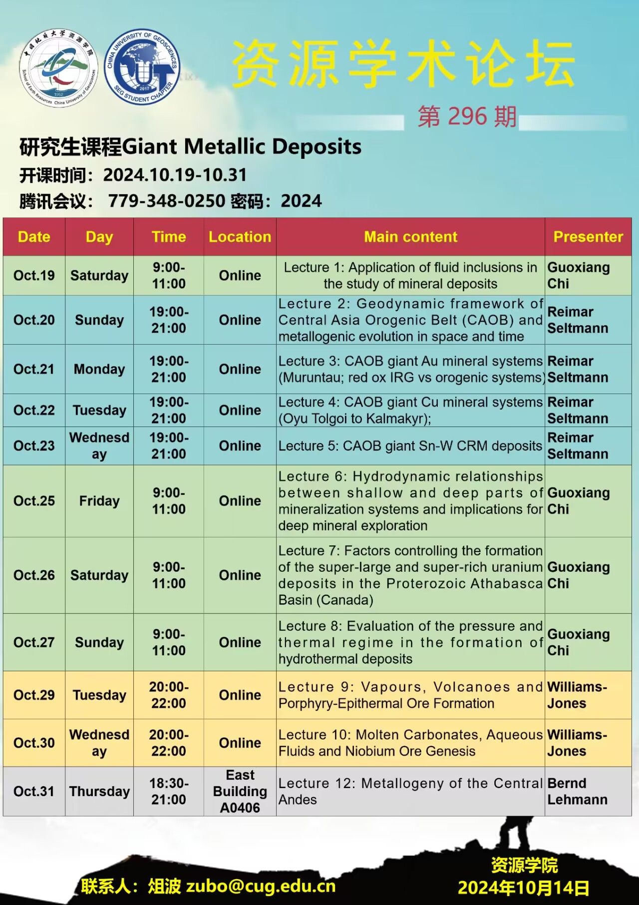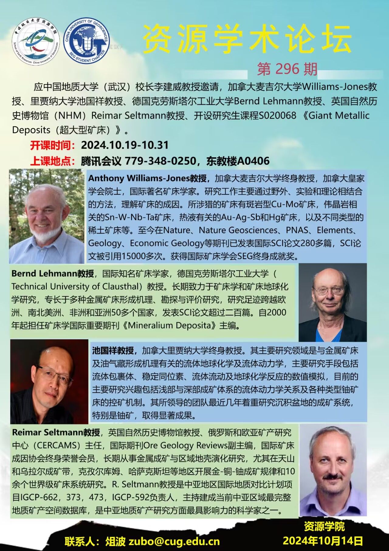 【10月19日-10月31日】第296期资源学术论坛:Giant Metallic Deposits(超大型矿床)