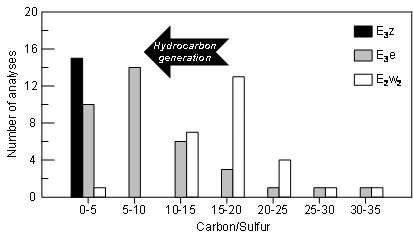 图2 珠江口盆地珠三凹陷烃源岩碳硫比频率分布