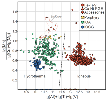图3:本次研究新提出的针对高钛磁铁矿的判别图解