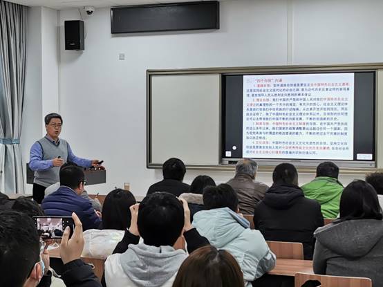 (通讯员 李国庆 王小明)11月28日下午,副董事长王华教授在东教楼B0106教室以“透过疫情防控,坚定四个自信”为题讲授专题党课,资源公司党委书记高复阳、盆地矿产系教师党支部和研究生党支部全体在公司党员参加学习,活动由盆地矿产系系支部书记王小明主持。