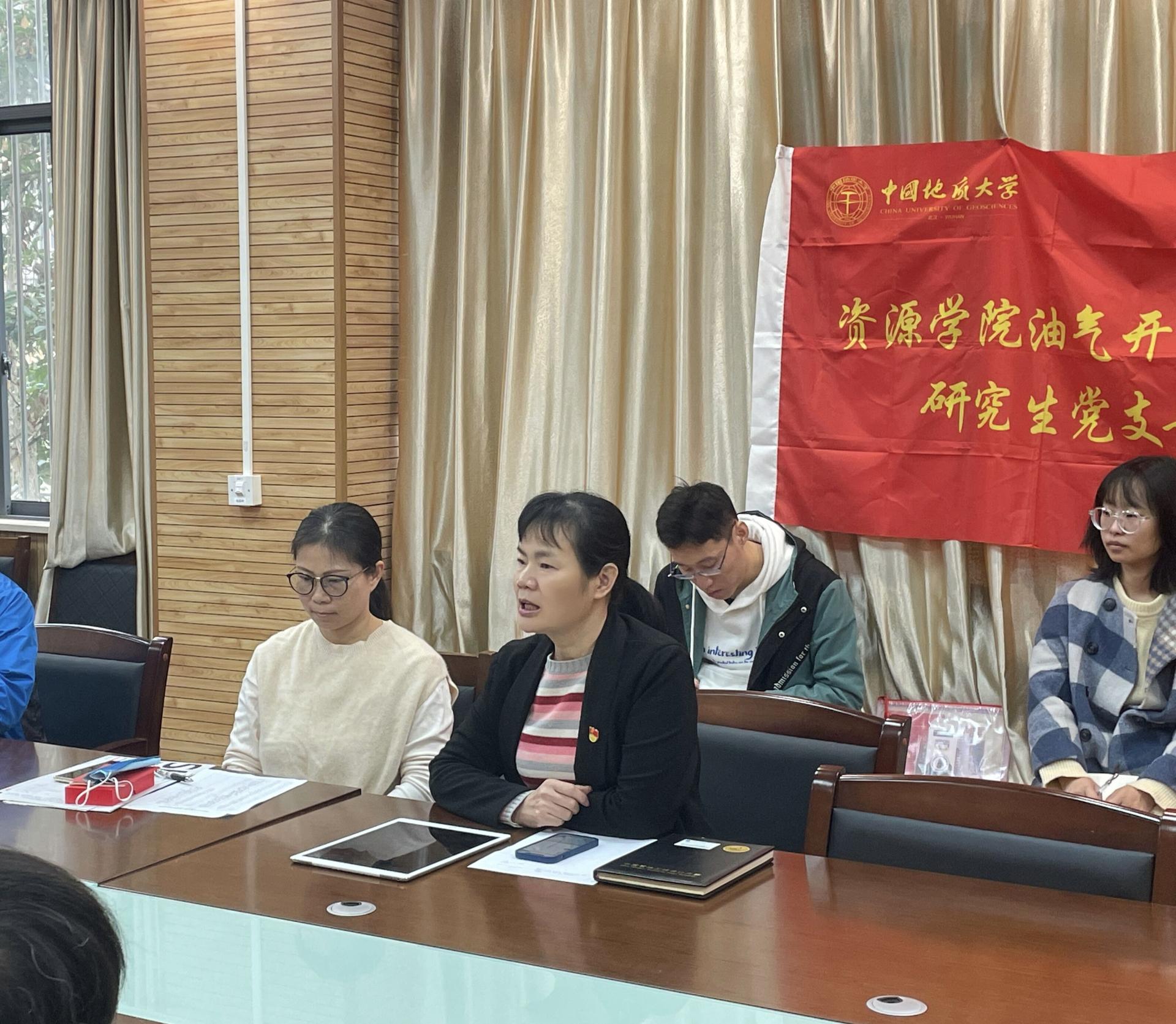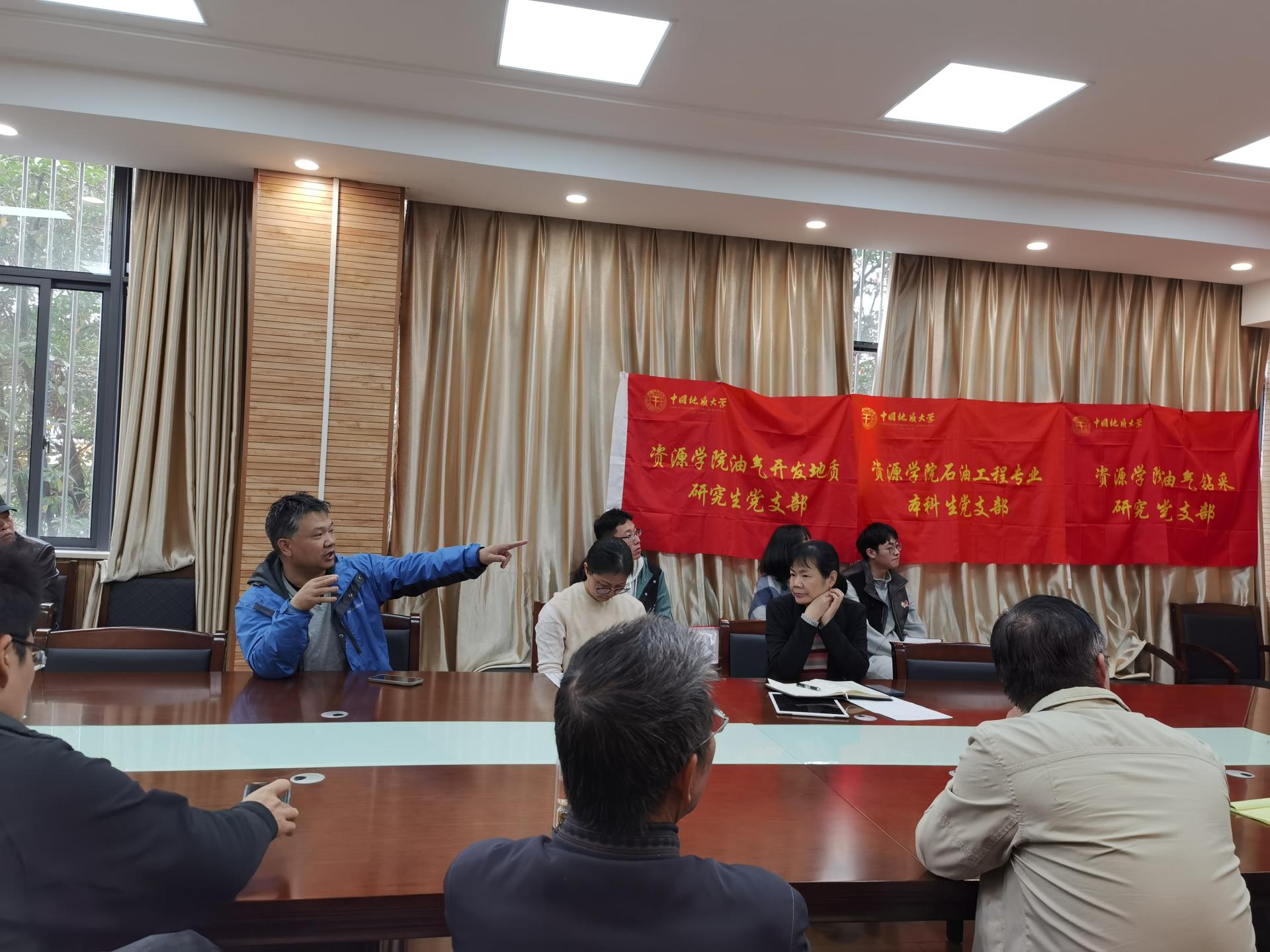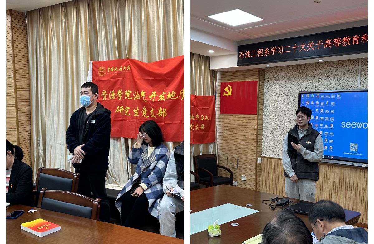 油气开发地质研究生党支部书记张阿芮、钻采工程研究生党支部李涛、本科生党员代表高旭东结合自己求学经历谈了学习党的二十大精神的感悟。他们说到,老师们对待教学计划精心准备、对待科研严肃认真、对待团队建设长远规划的态度令人印象深刻,并对本科课程实践环节的设置提出了建议。