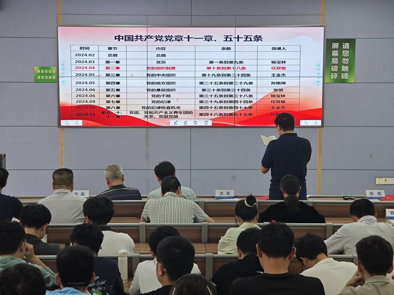 全体党员在任双坡同志领诵下开展《中国共产党党章》集体学习
