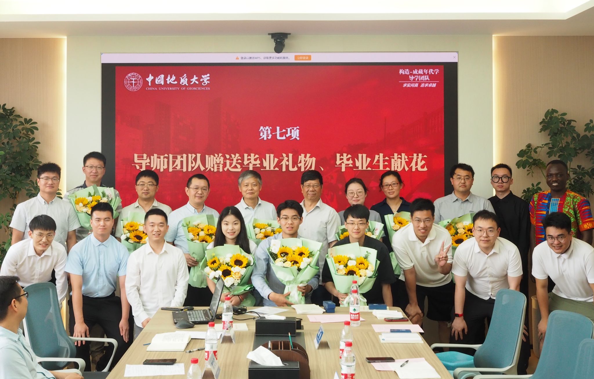 毕业生向导师团队献花感念师恩