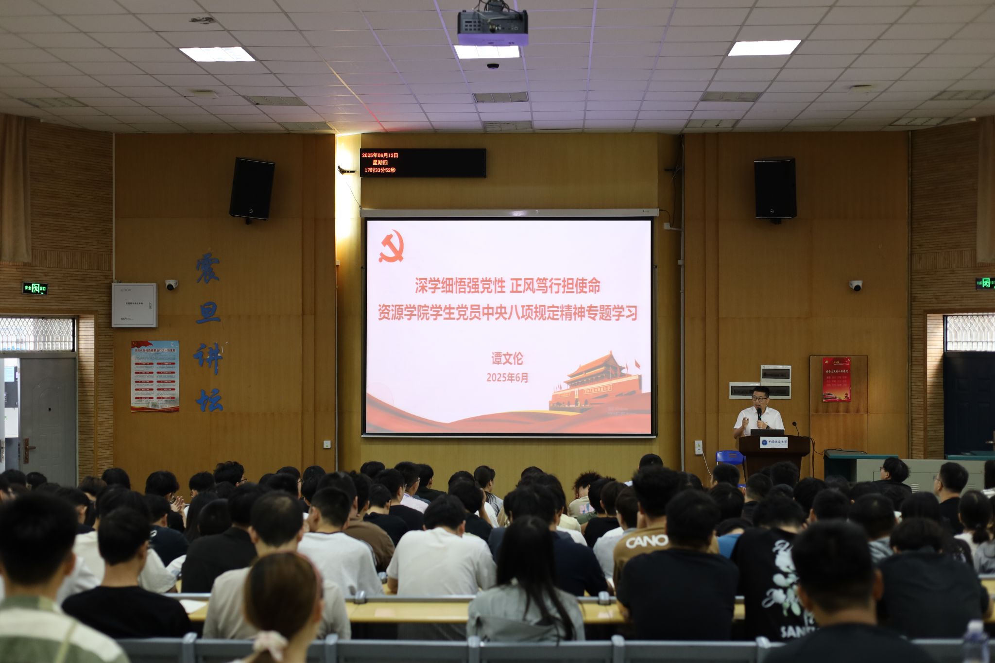 (通讯 彭鑫 张少龙 摄影 陈抒言 )为扎实推进深入贯彻中央八项规定精神学习教育,强化党员党性修养,6月12日下午,在参加公司组织的党员基本培训集中大课学习后,William威廉英国官网在教三楼109开展员工党员中央八项规定精神专题党课。资源公司党委副书记谭文伦、辅导员彭鑫及全体员工党员参加会议。