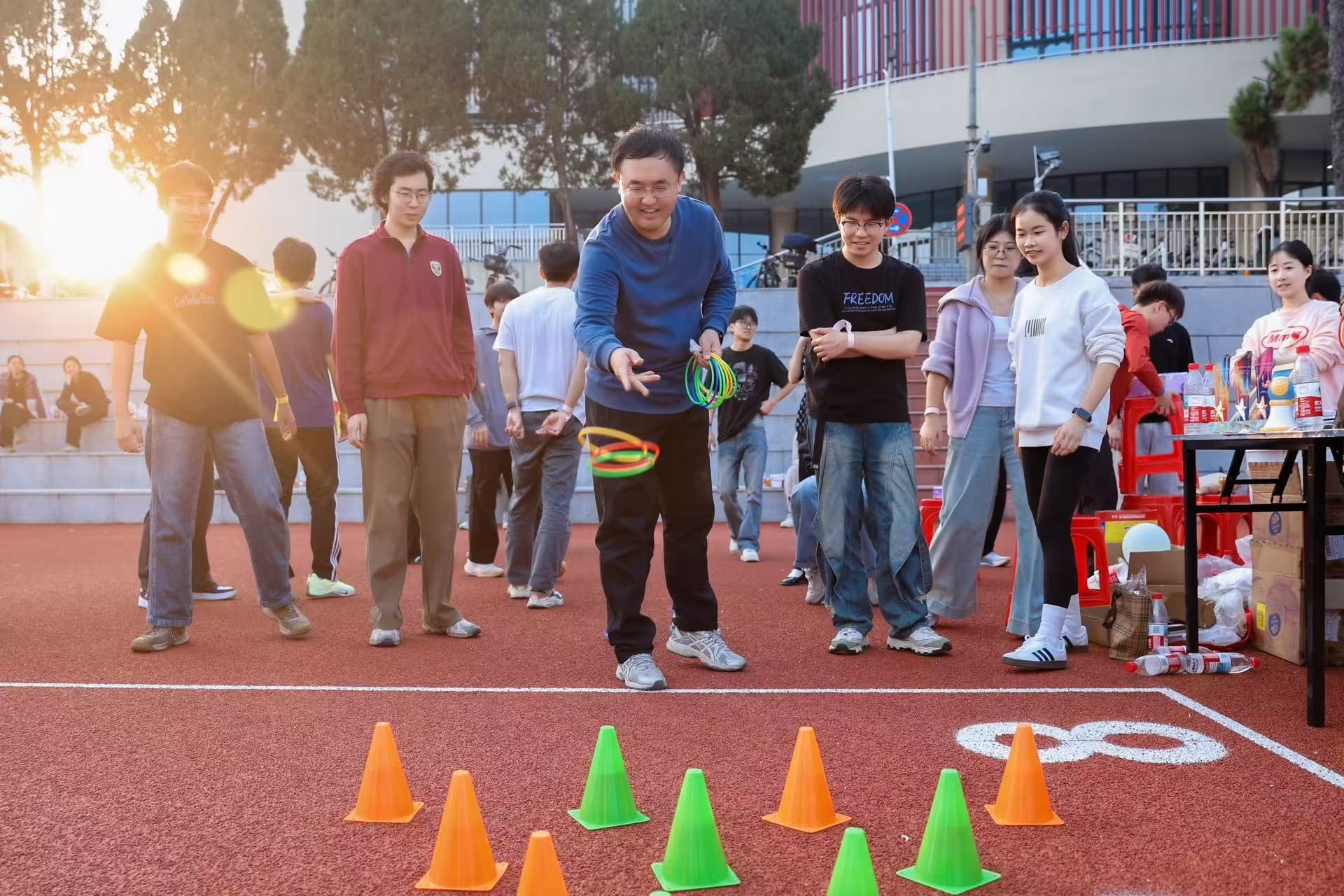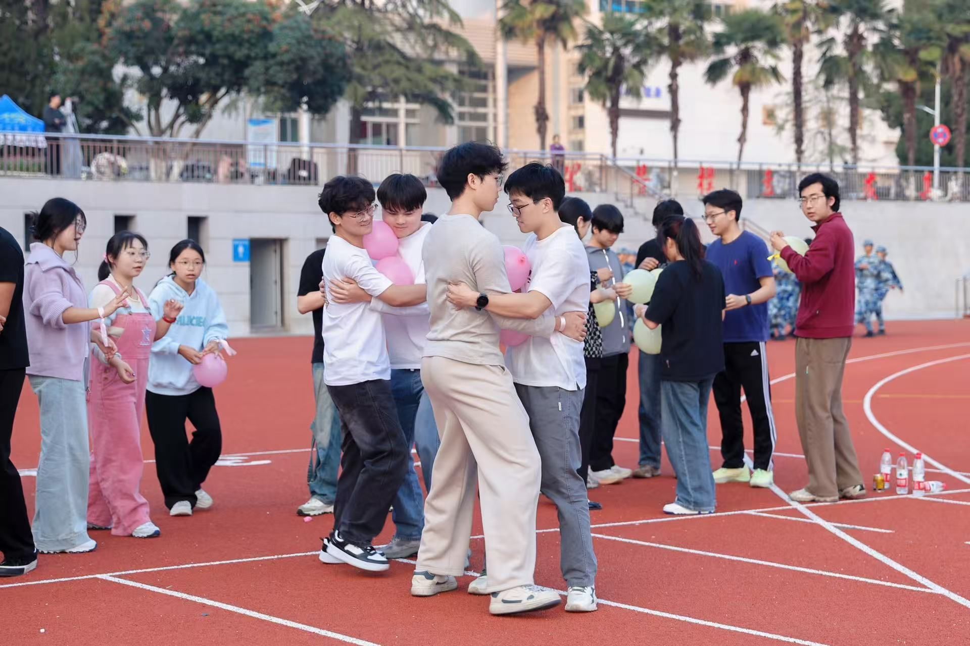 见面会结束,导学团队、党支部和团支部全体师生来到西区运动场,共同开展一场别开生面的导学师生趣味运动会。运动会设置了“气球传递”、“同心接力”等兼具协作性与趣味性的比赛项目。赛场上,研究生党员与本科生团员混合编组、携手比拼,掌声、笑声、助威声此起彼伏。整场活动在轻松愉快的氛围中,为党团成员提供了良好的交流机会,也为后续共建活动的持续开展奠定了坚实基础。
