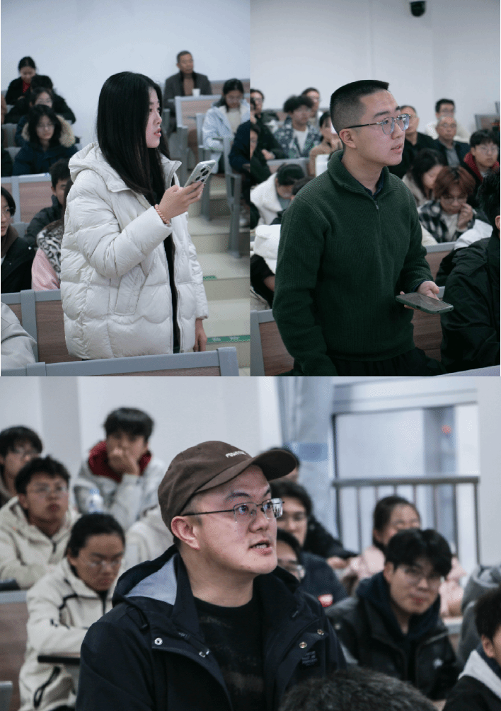 互动交流环节,现场气氛热烈活跃。同学们围绕行业发展趋势、专业学习重点、职业发展规划等核心问题踊跃提问。周波局长以朴实真挚的语言,结合自身攻坚克难的亲身经历逐一耐心解答,不仅为同学们答疑解惑,更分享了地质人“坚守初心、不畏艰辛、勇担使命”的精神内核,让在场师生深受触动。