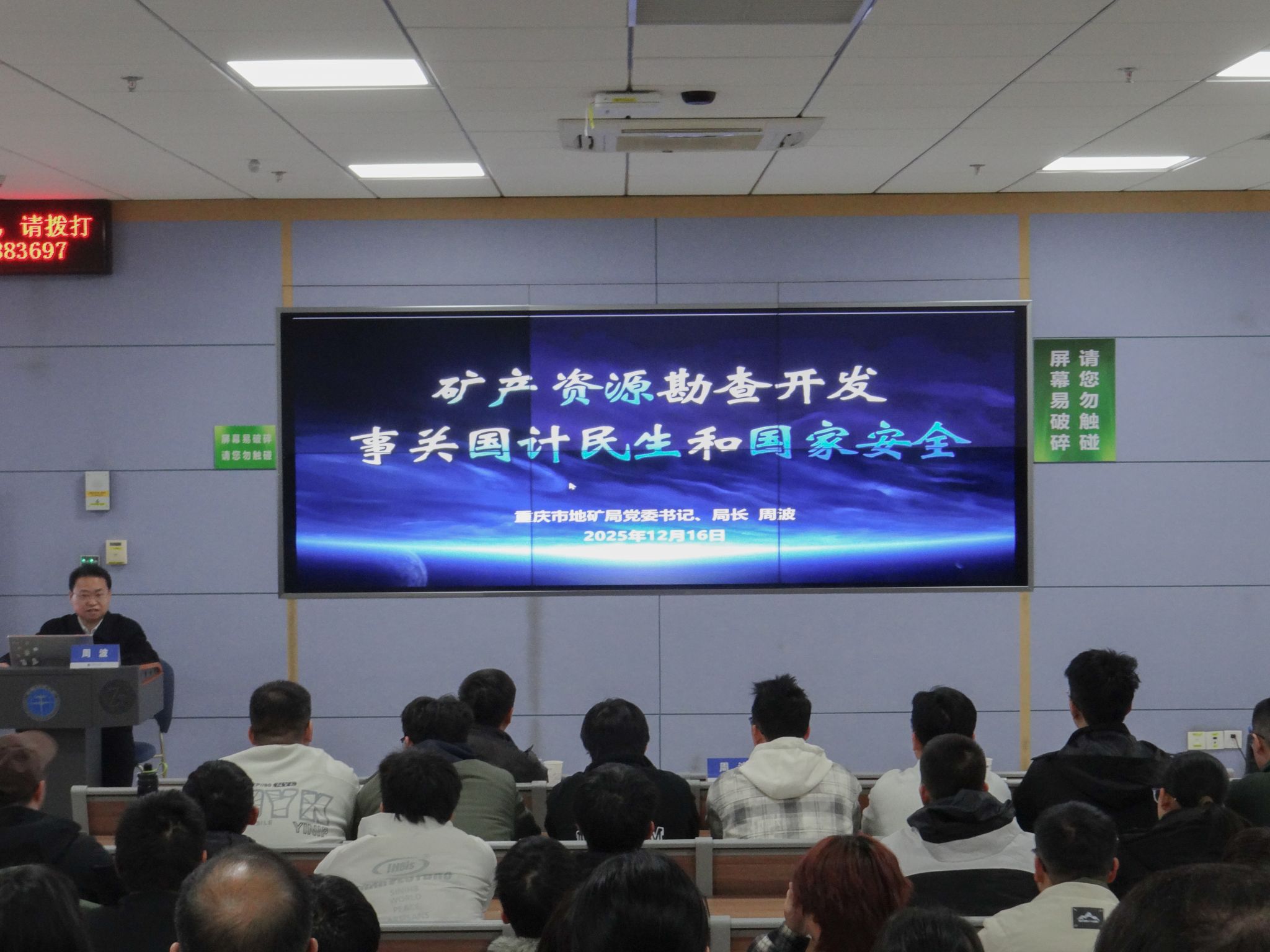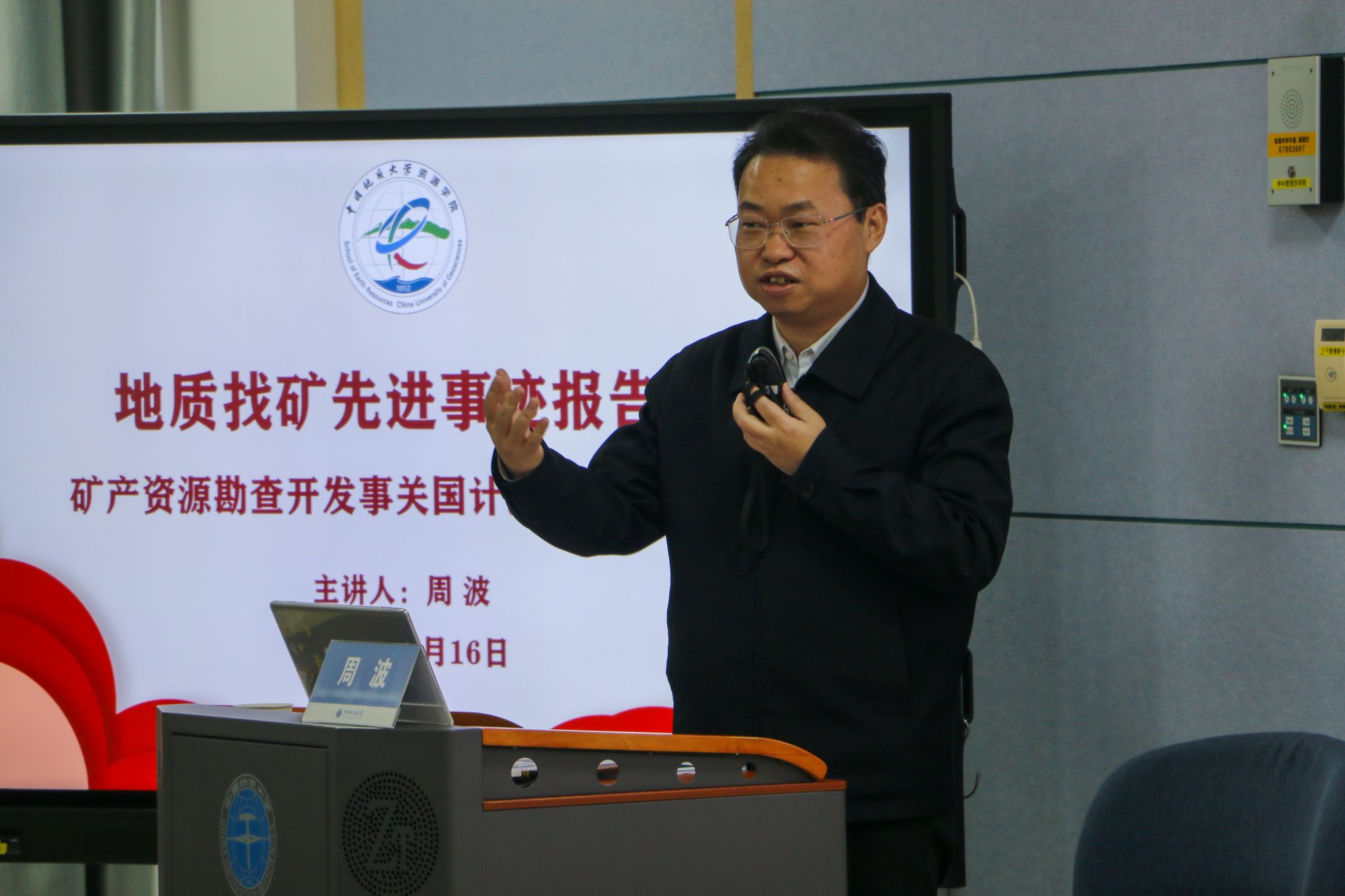 周波局长以“矿产资源勘查开发与国计民生和国家安全”为主题,结合自身多年行业深耕经验剖析矿产资源的核心价值与矿业发展特性。他指出,矿业是工业之基,矿产资源贯穿文明演进,且具备“高技术、高投入、高风险、高回报”特性,其中“高技术”是首要前提,面对战略性矿产资源“卡脖子”风险,需靠科技引领、技术攻坚破局。他寄语学子破除认知误区,锤炼“找大矿、找好矿”本领,提升全链条专业能力,让个人价值与国家发展同频共振,成长为契合国家战略需求的地质专业人才。