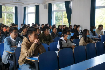 卢勇以《中国共产党百年辉煌及经验启示》为题,以中华民族伟大复兴的探索历程为线索,抓住中国共产党百年征程中重要节点事件,深入阐释了对于党的百年历程的感悟和思考,引导同学深刻体会百年来党领导下中华民族的沧桑巨变。他带领大家庄严诵读《共产党宣言》,在激昂的声音中,传递中国共产党人在风雨如晦中坚如磐石的信仰信念。他讲到,“中华民族的昨天‘雄关漫道真如铁’,中华民族的今天‘人间正道是沧桑’,中华民族的明天‘长风破浪会有时。”他指出,党史应当成为新时代青年的必修课,在对中国共产党百年辉煌的感悟与思考中,启迪智慧,砥砺品格,坚定信念,走好新时代的长征路。