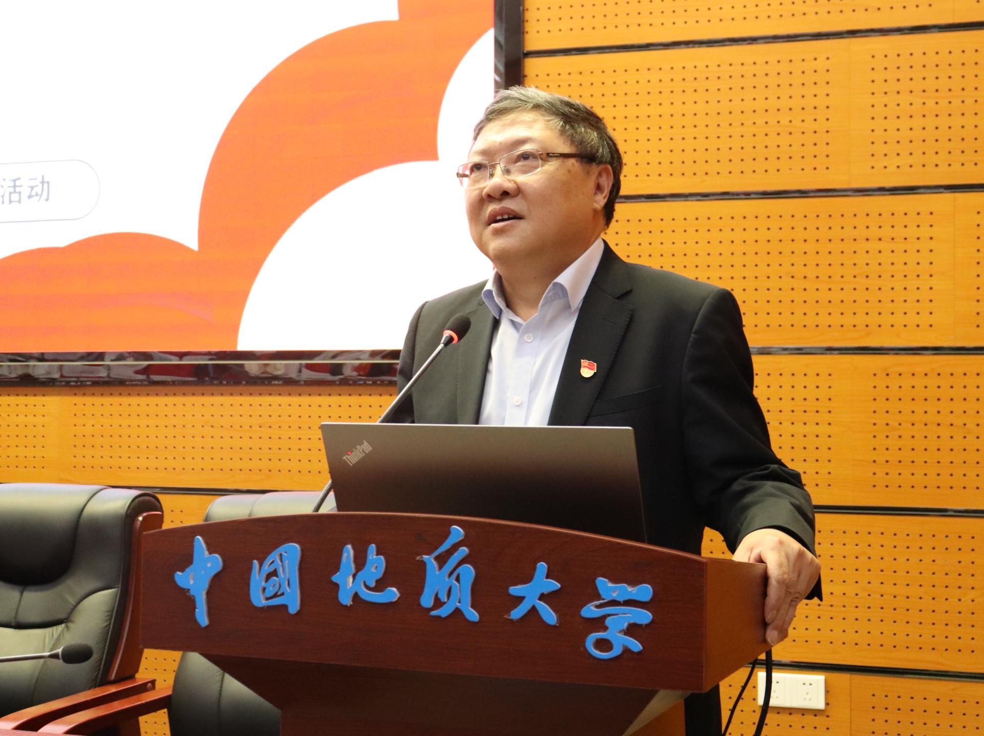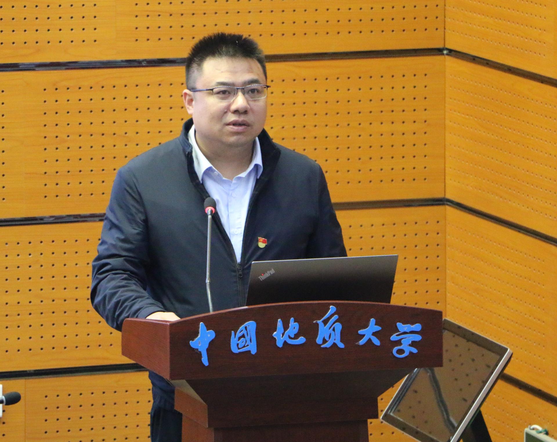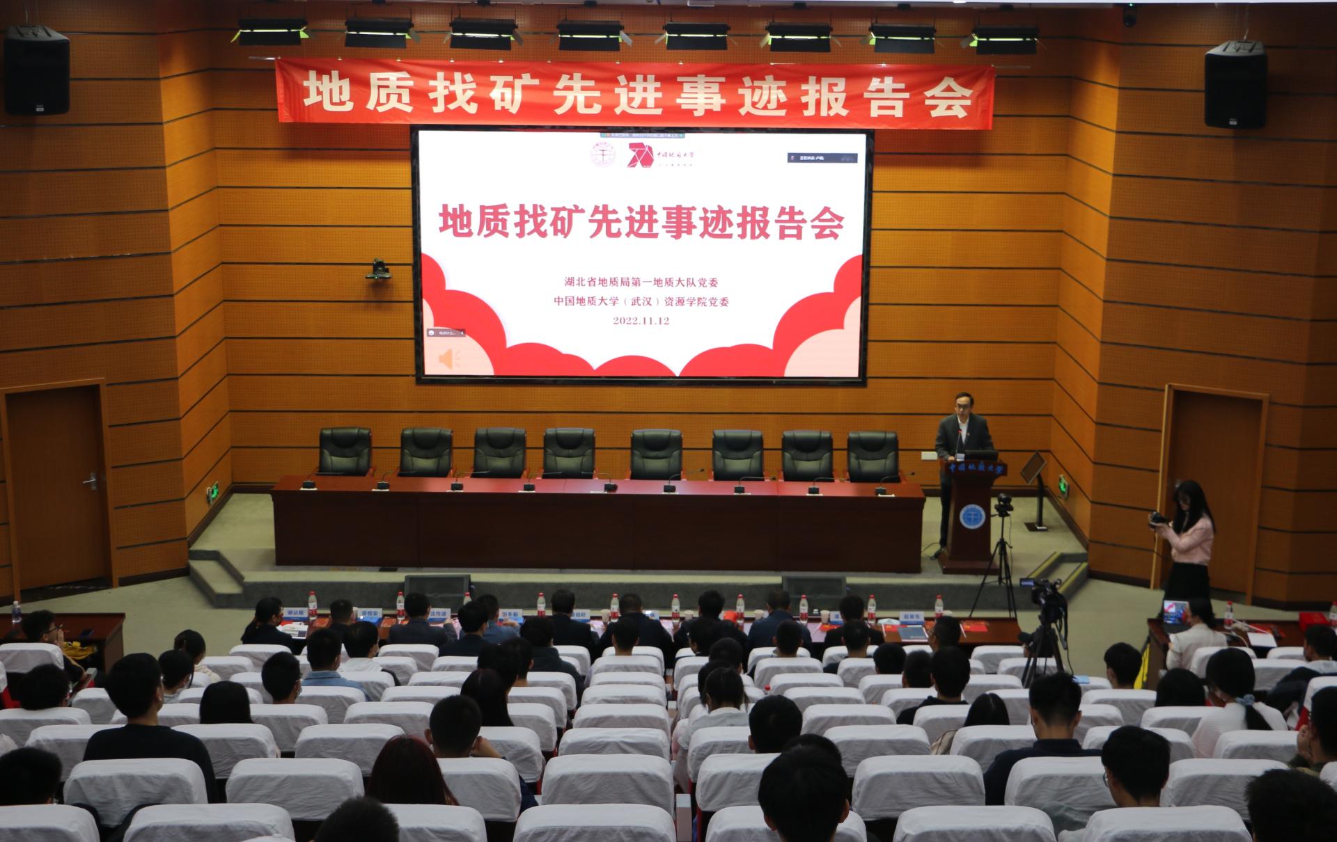 为深入学习贯彻习近平总书记关于能源资源工作的重要论述和重要回信精神,大力弘扬地质工作者的优良传统,激励师生坚定资源能源报国理想信念,11月12日,资源公司党委联合湖北省地质局第一地质大队党委开展理论学习,举办地质找矿先进事迹报告会,组建资源能源宣讲团。全国地质勘查功勋单位湖北省地质局第一地质大队党委书记、队长、公司资源勘查工程专业2004届本科毕业生吴昌雄作专题报告。湖北省地质局第一地质大队副队长刘冬勤、杨伟卫,副总工程师蔡恒安,公司党委常委、宣传部部长储祖旺,公司党委书记高复阳,副经理赵葵东、沈传波,党委副书记谭文伦,教育部首批“双带头人”教师党支部书记工作室负责人谢丛姣,资源科学与工程系教师、员工代表,第27期入党积极分子培训班学员线下参加报告会,全体员工党支部、员工班团委成员在线参加报告会。副经理赵葵东主持报告会。