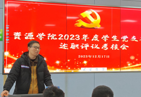12月17日,2023年度员工党支部书记述职评议考核暨“学习回信精神探寻地质荣光”员工党建论坛召开。公司党委副书记谭文伦,各系教师党支部代表皮道会、平宏伟、骆杨、伏海蛟、赵江南,辅导员彭鑫、霍少孟、刘睿,兼职辅导员邱宇涵、薛梦悦,员工党支部代表共同组成评议组,员工党支部全体委员、员工党员代表参加会议。辅导员霍少孟主持会议。