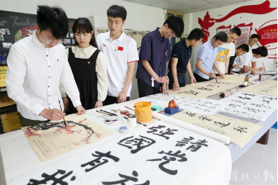 五四青年节,书画沙龙上,学子抒发爱党爱国爱校情怀。
