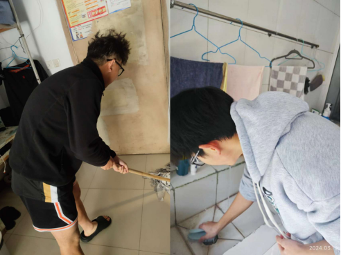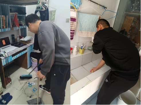 抓住课堂主渠道作用,通过劳动教育课,引导员工积极开展爱国卫生公寓清扫活动,同学们认真清扫走廊、楼道的每一个角落,宿舍环境焕然一新,地面、阳台干净整洁,物品摆放有序,空气清新宜人。