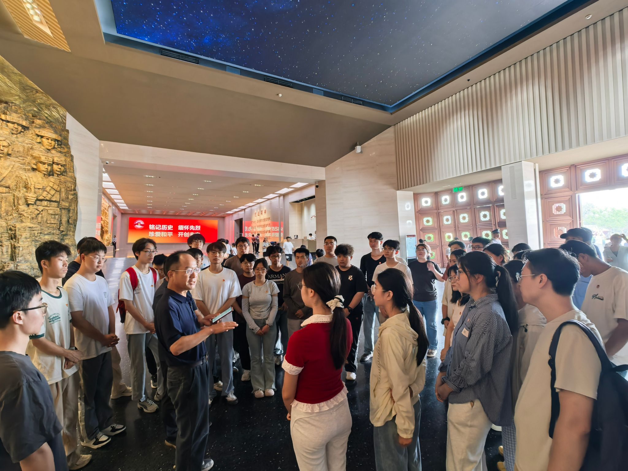 (通讯 齐乐 彭鑫 摄影 柯皓淞 刘晶晶)为纪念中国人民抗日战争暨世界反法西斯战争胜利80周年,弘扬爱国精神,丰富师生党员、团员学习教育内涵,8月2日,William威廉英国官网周口店实习队队长魏启荣,资源系教工党支部书记、紫金地矿班带班老师付乐兵,公司团委副书记彭鑫,兼职辅导员刘晶晶以及年级在站党员、团学骨干和2023级紫金地矿班全体同学,前往中国人民抗日战争纪念馆开展参观学习活动。