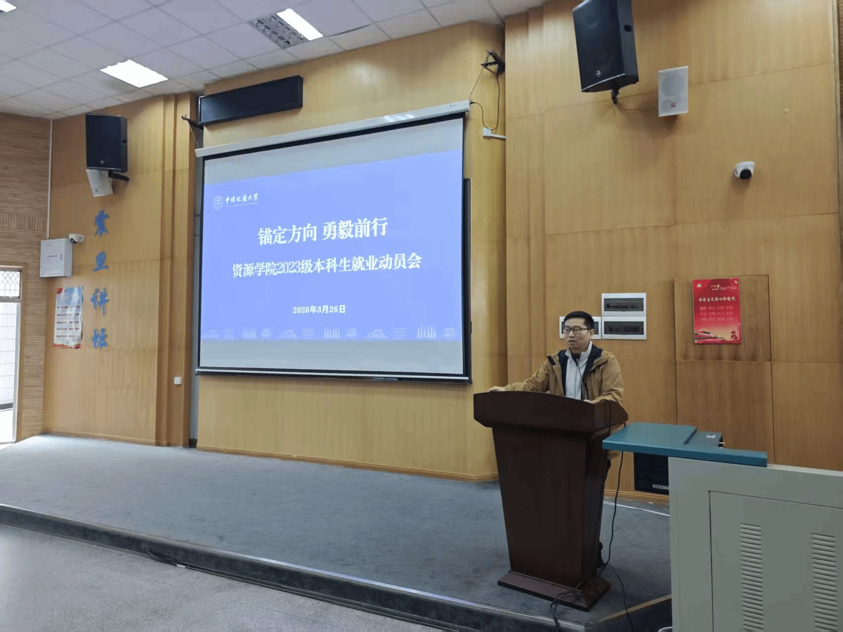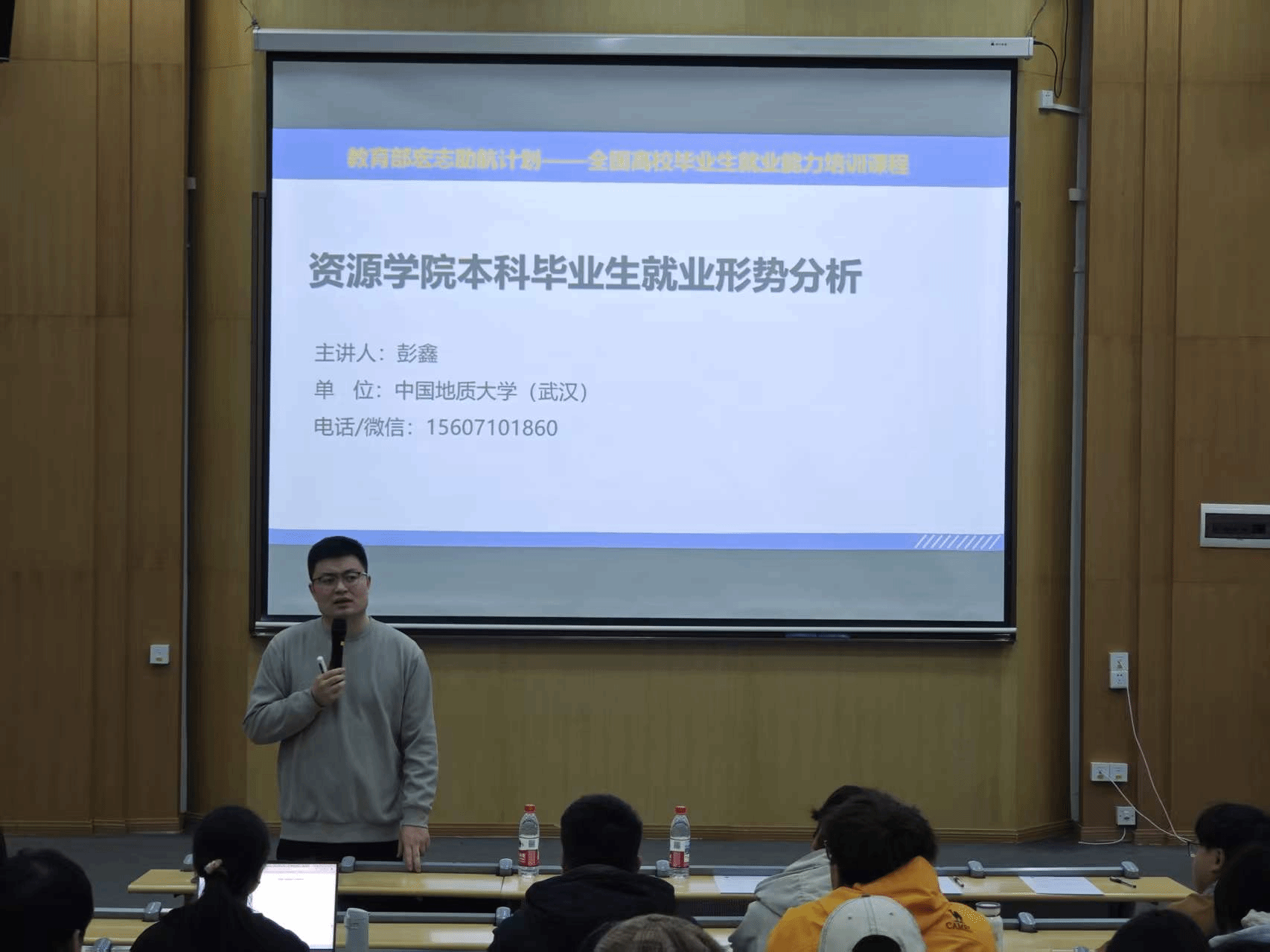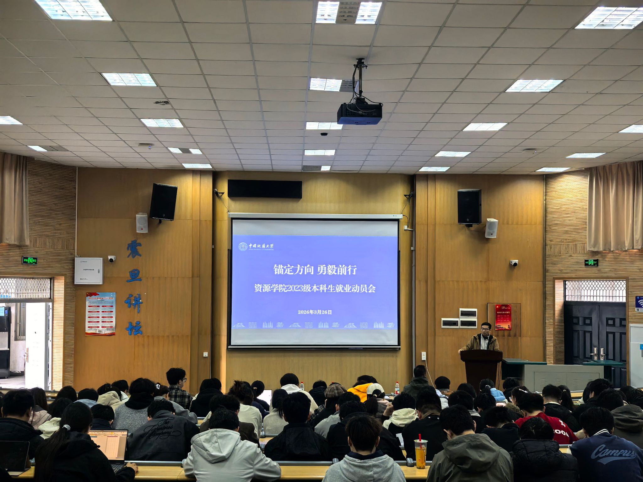 (通讯 席伟琦 摄影 陈思程)3月26日,2023级本科生就业动员会在南望山校区教三楼109举行。公司党委副书记谭文伦,万学教育副总经理杨剑峰,辅导员彭鑫,中国海油工程专项计划入选员工唐果、保研至北京大学员工杜璐宇及2023级全体本科生参加活动。会议由彭鑫老师主持。