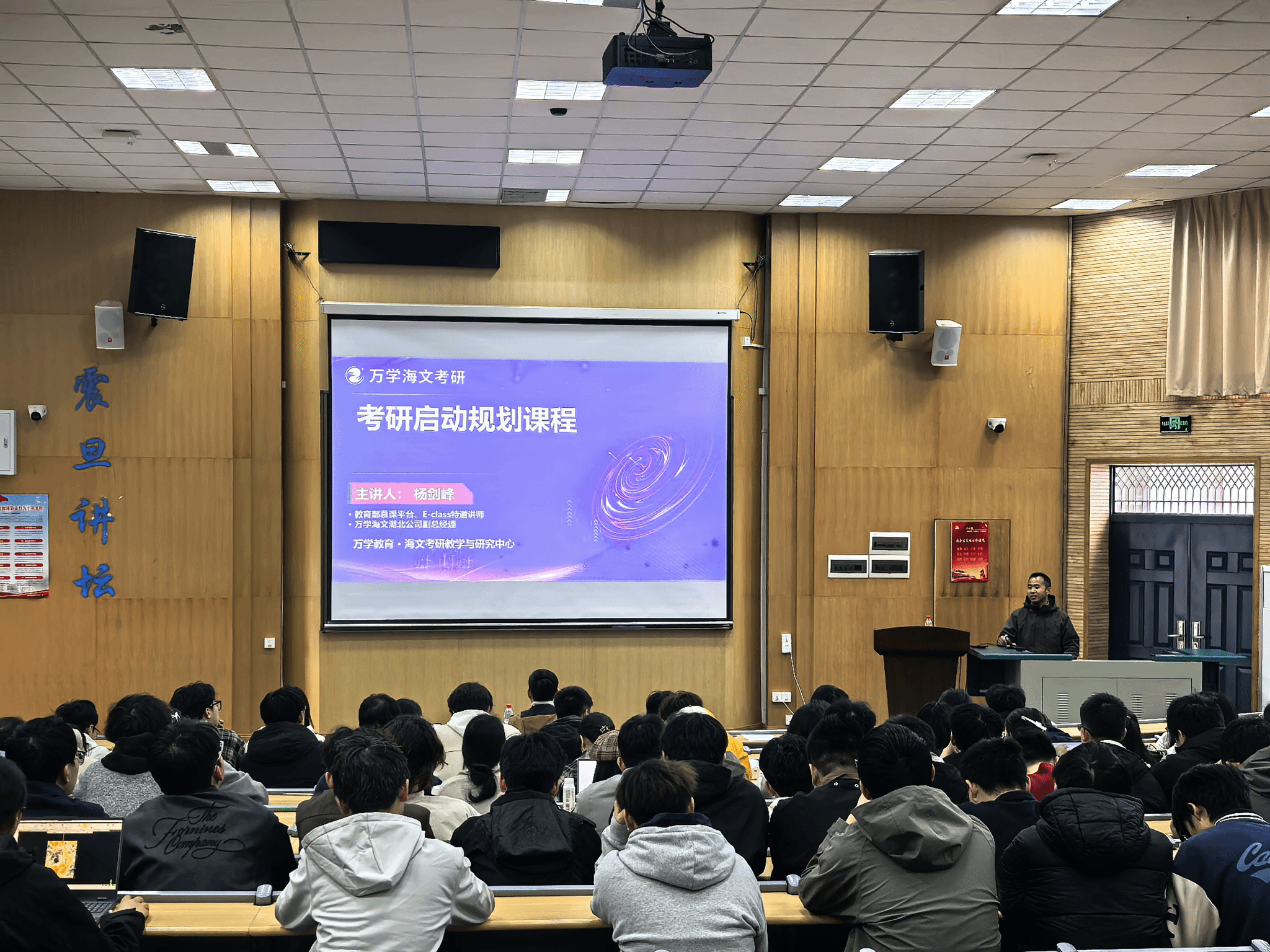 海文考研副董事长杨剑峰作考研形势分析与规划报告。他从考研的必要性切入,指出当前就业结构性矛盾突出、优质企业对院校和学历门槛的要求日益提高,考研是综合性价比最高的毕业方向之一。他强调,在考研这条路上“选择大于努力”,需要明确自身发展方向。他系统介绍了考研宏观形势、院校专业选择方案及基础阶段复习规划,帮助同学们在升学备考的道路上明方向、强基础、提效率。
