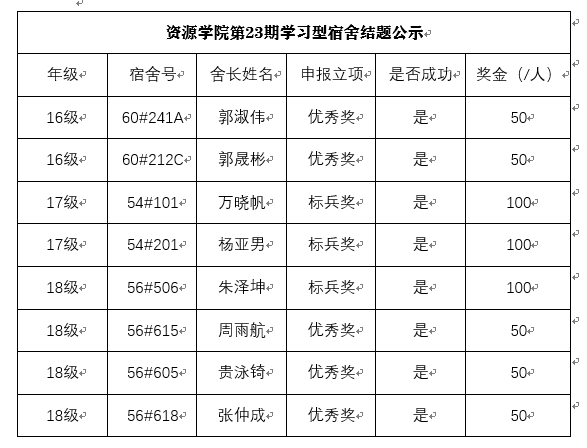 第23期学习型宿舍结题情况公示如下: