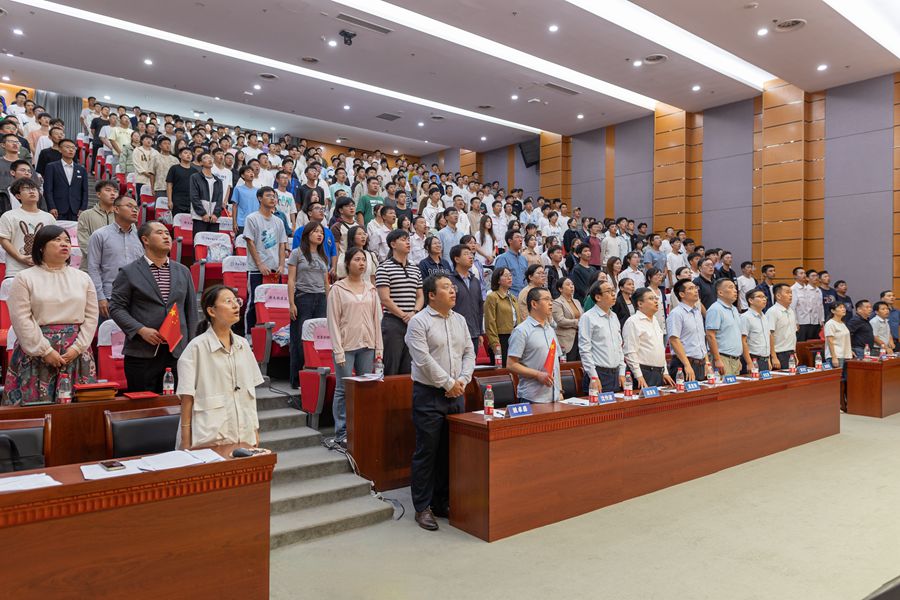 典礼在雄壮的国歌声中开始。全体院领导,各系党支部书记、主任,2023级班主任,教师代表,院直全体老师,2023级助理班主任、“党员责任区”驻班党员,高年级员工代表,全体2023级本科生参加典礼。2023级本科生辅导员彭鑫主持典礼。