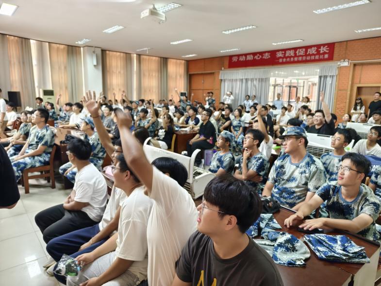 在有奖竞答环节,同学们踊跃举手抢答,现场气氛热烈而活跃。这一环节不仅考验了同学们对劳动知识的掌握程度,也激发了他们对劳动的热情和兴趣。