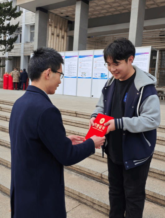 石油地质系党支部委员叶青、石油工程系副主任孟庆帮为科普视频和徽章设计获奖者颁奖。