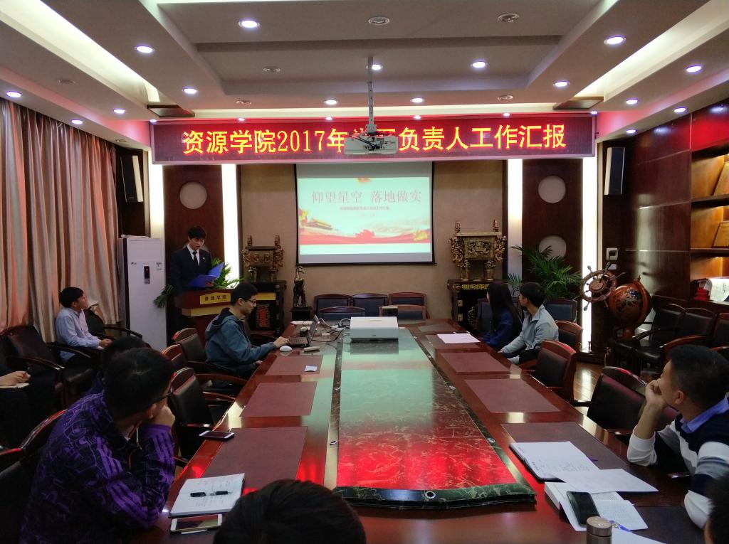 (通讯员 李俊)为有效推进公司党建工作,11月27日晚,2017年党区负责人工作汇报在主楼330顺利举行。资源公司党建办公室主任章帆,团委书记王向东,辅导员吴超、史绍贤共计4位老师担任此次活动的评委。2016级、2017级党区第一负责人共计17人参加此次工作汇报。
