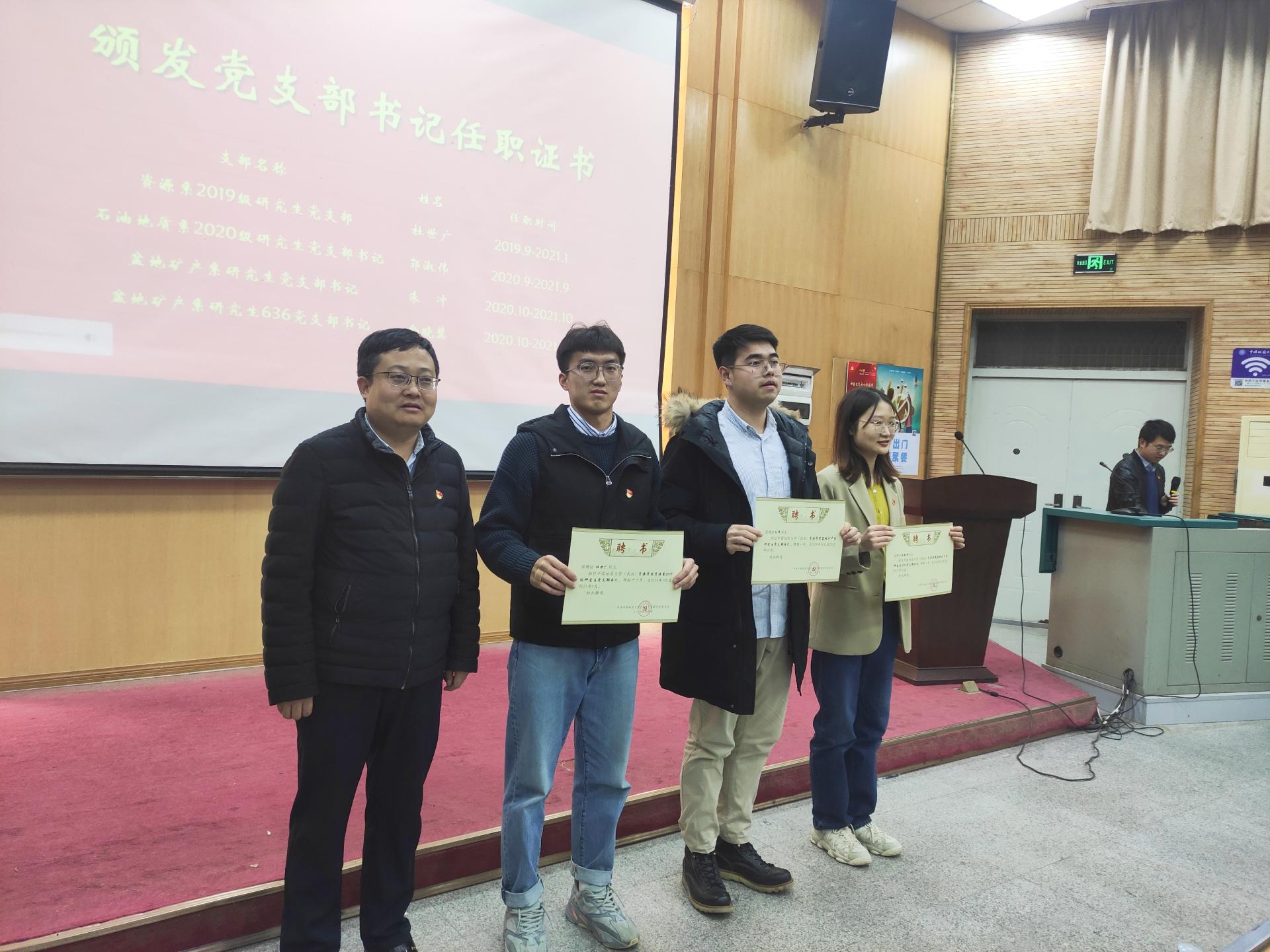 高旭东分享了在党组织培养考察中不断端正入党动机、以实际行动积极向党组织靠拢的过程,分享了在党史学习教育中的所学所悟。他表示,将以党员的标准严格要求自己,以实际行动践行“请党放心,强国有我”的铮铮誓言,夯实专业本领,积极投身资源能源强国事业,与无数青年党员一起接过时代旗帜,做更好的答卷人。