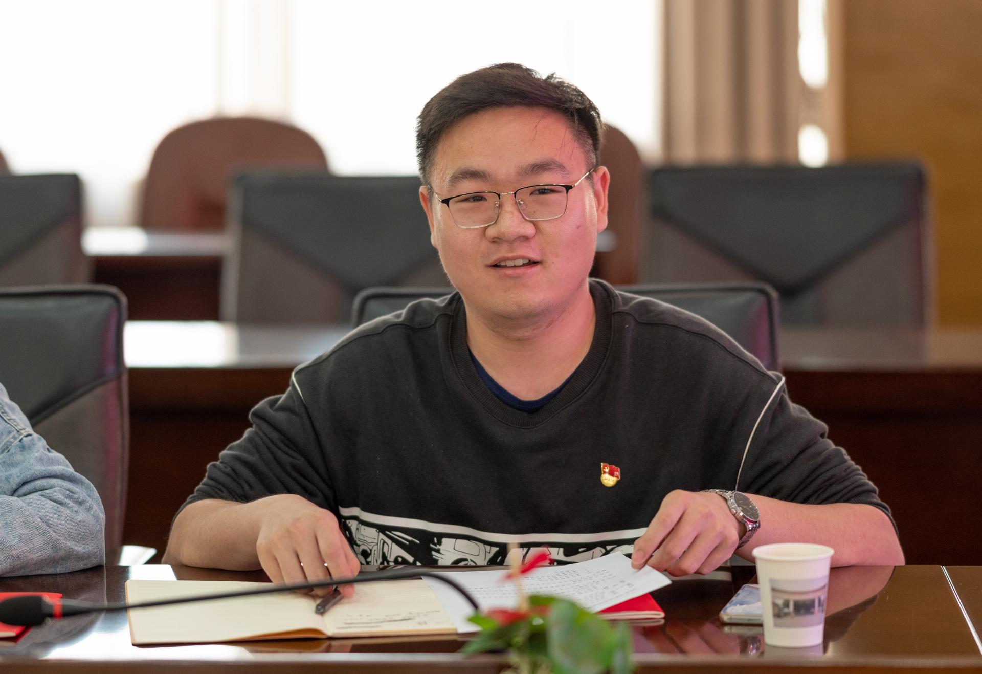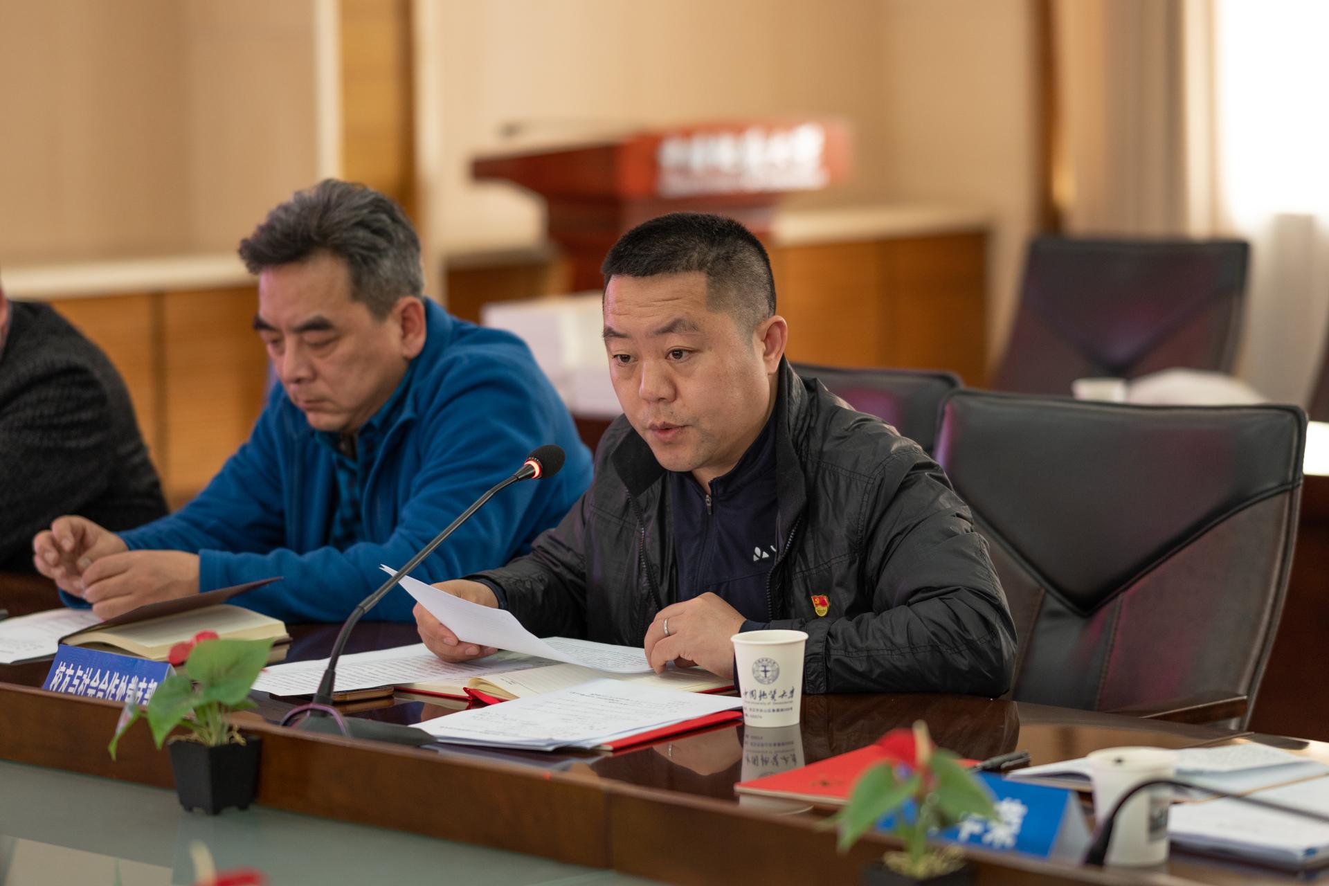 员工党员胡强、李帅平两位同志分享学习心得。他们表示,将践行初心,肩负使命,为国家资源能源事业发挥更大“资源人”作用,将地大精神传承发扬在祖国大好河山,在地质工作中实现人生价值,成就非凡梦想。
