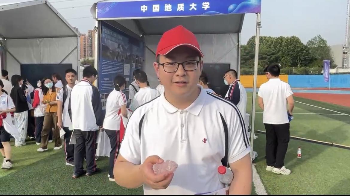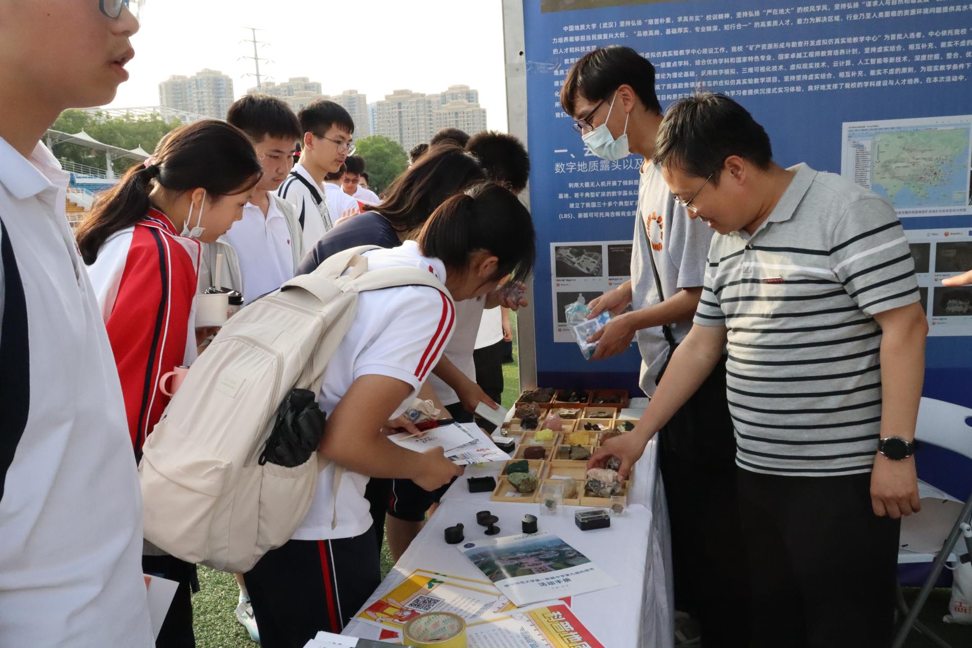 高复阳在科技展台与华一学子亲切交流。他勉励华一学子矢志向学,并热情邀请同学们走进地大校园,感受地学魅力。
