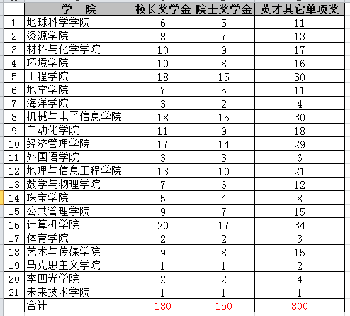“地大英才奖学金”(“李四光英才奖”、“少数民族员工奖”、“创业之星奖”除外)采取等额评选办法,各公司具体名额见下表。