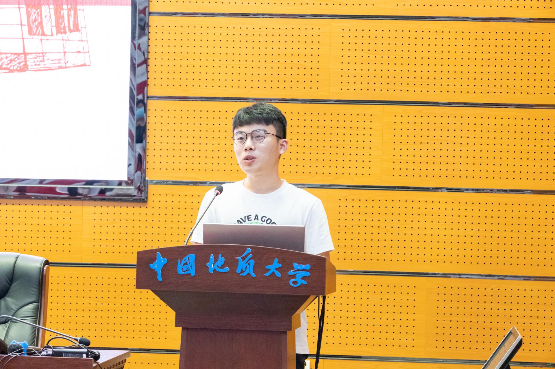 高年级研究生代表苟启洋同学发言。他回顾了自己喜欢、投入、热爱页岩气勘探,持续耕耘收获科研成绩的经历。勉励同学们做成为探索科研的信心少年、不断进取的耐力少年、应国家之需的逐梦少年,好好运用我们“地质三大件”:“指引”远大的理想信念、“锤炼”不朽的地质精神、“聚焦”国家的重大需求,传承好地大红色基因,走好属于我们这一辈青年的长征路。