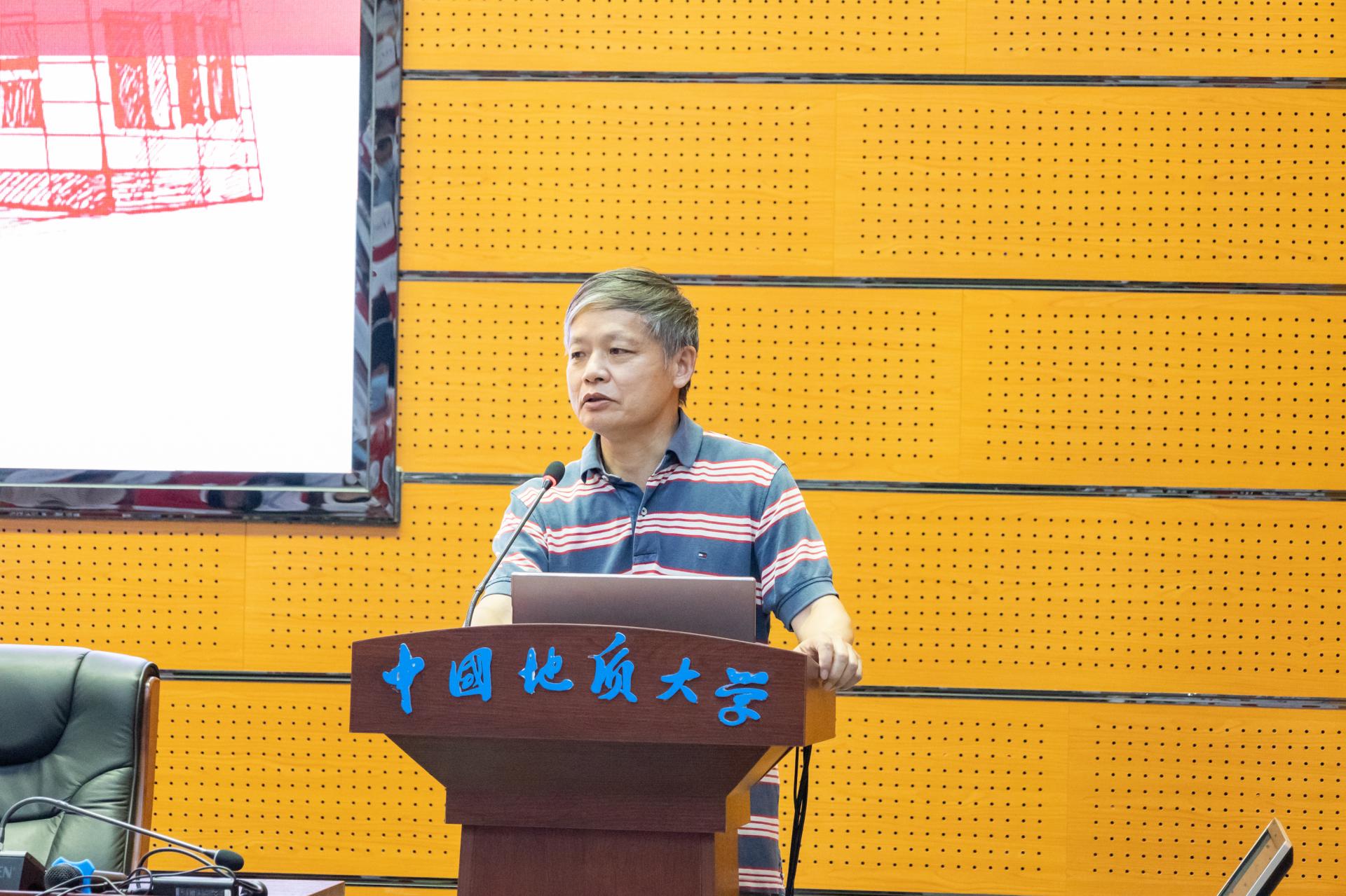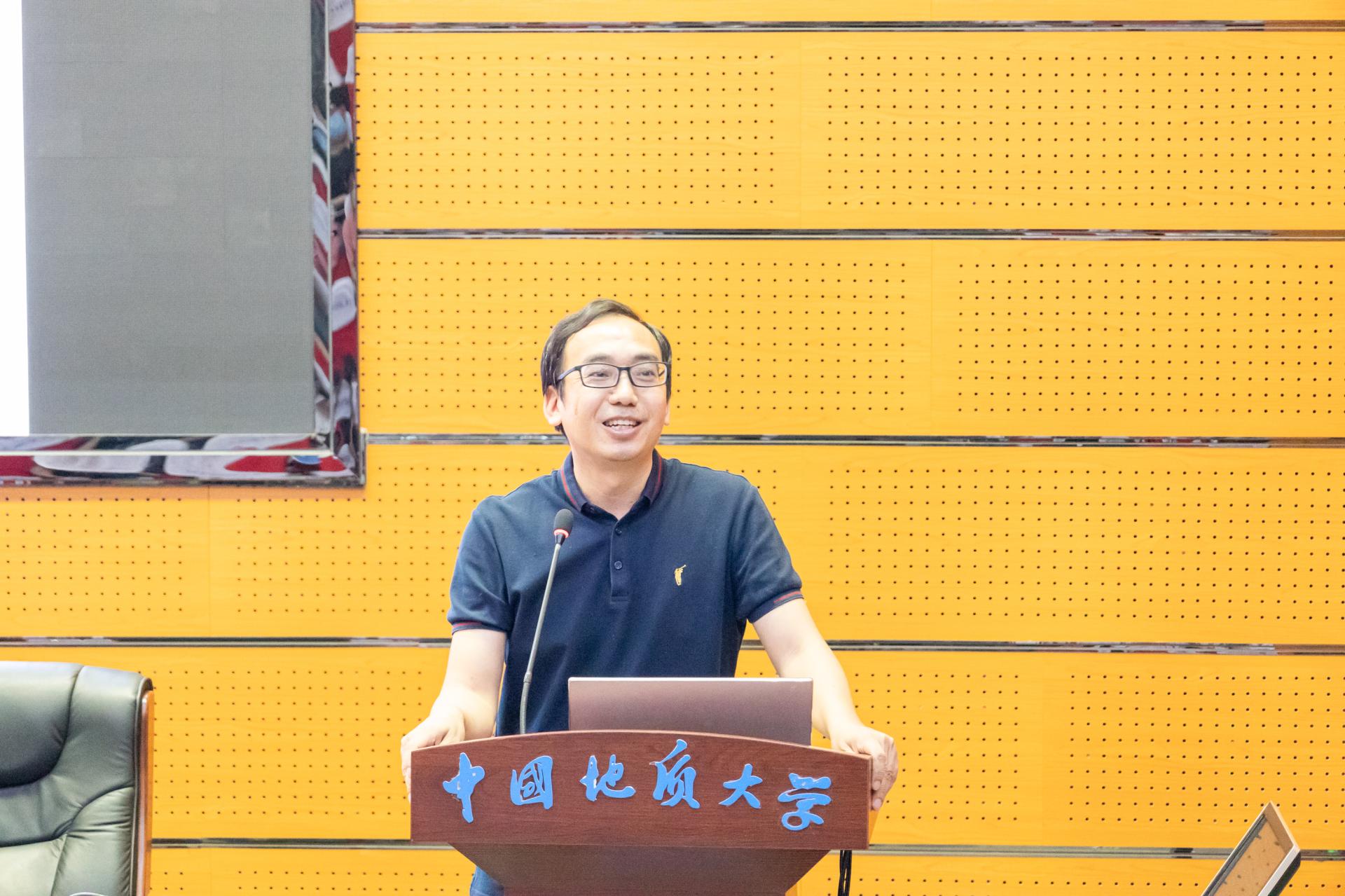导师代表、石油地质系梅廉夫教授发言。他讲述了现代大地构造学说的发展历程,即从大陆漂移学说理论的提出到被攻击、发现海底扩张新证据、确立板块构造学说地位的艰难过程;亲切勉励同学们在科学研究的道路上,既要仰望星空,更要知行合一,专注、自律、苦练,努力为科学创新贡献自己的力量。