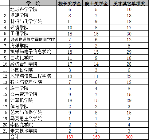 “地大英才奖学金”(“李四光英才奖”、“少数民族员工奖”、“创业之星奖”除外)采取等额评选办法,各公司具体名额见下表。