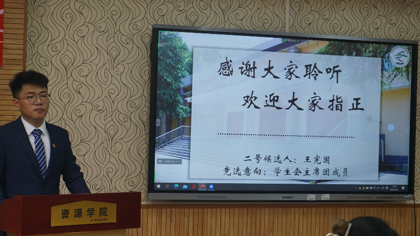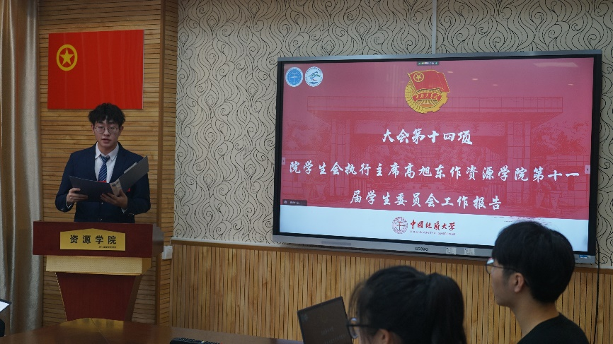 刘明辉致闭幕辞。她希望全体代表以及全体同学以这次大会的精神为动力,树立起强烈的历史责任感,发扬“求实奋进,勇攀高峰”的院风学风,践行“求是创新,厚德奉献”的资源人价值观,为保障国家资源能源安全和实现中华民族伟大复兴的中国梦贡献青春力量。