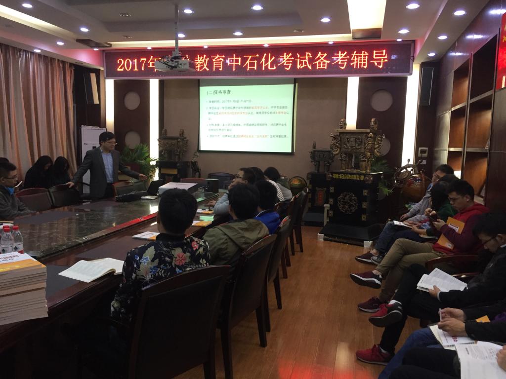 中公教育市场部邱子龙老师主持此次培训。在邱子龙介绍主讲教师吴俊以后,培训开始。吴俊从中石化的历年考试情况、考试题型、今年考试改革创新的地方等几个方面,让毕业生们深入了解中石化考试具体信息。在场的同学反应热烈,认真听讲,并积极地向老师提问。吴俊对大家的问题也进行了一一解答。