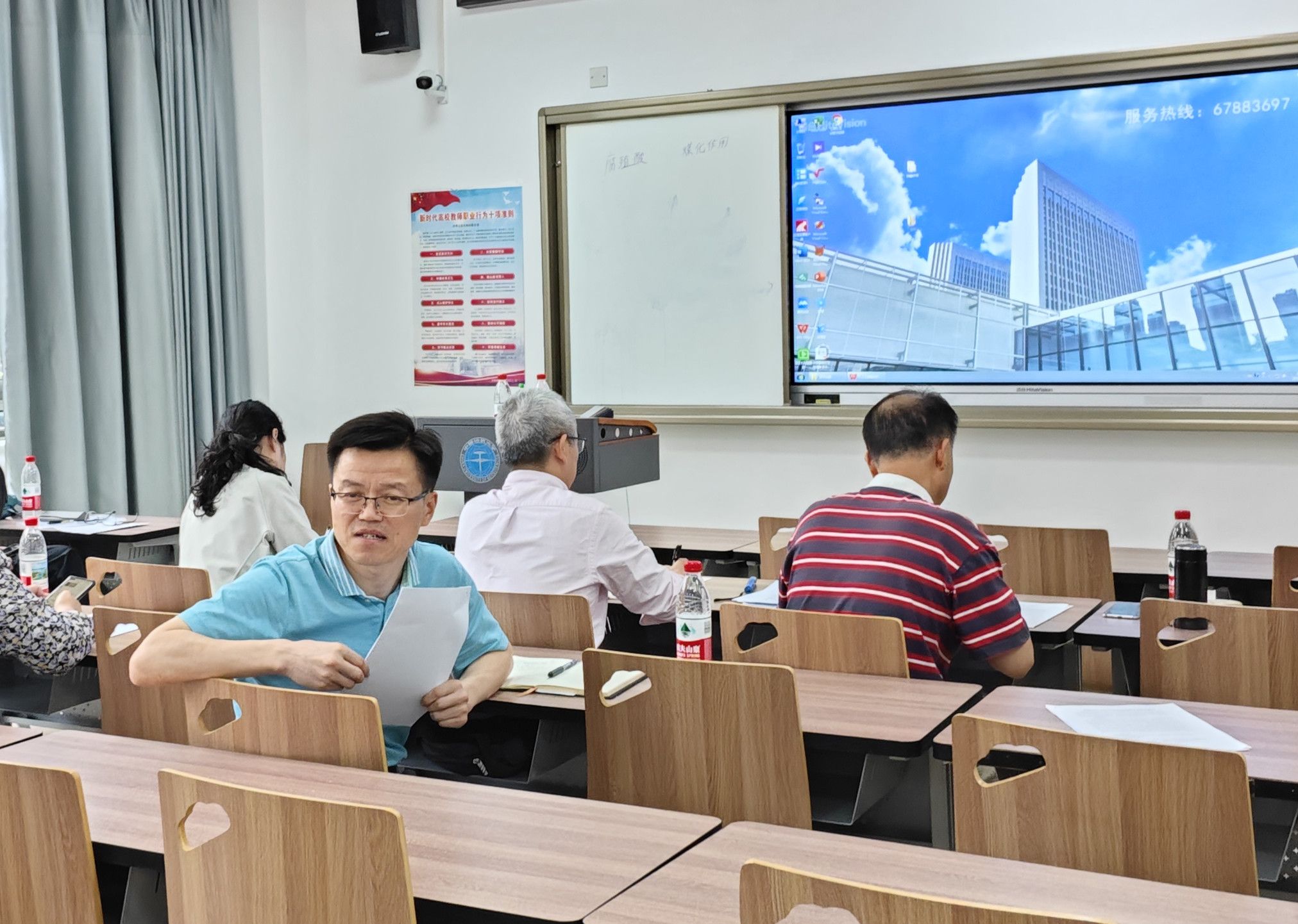 公司在4月初发布了通知,要求各系选派优秀选手,并在选题、讲课、教案等方面做好准备,最终各系推荐的五位青年教师参加公司竞赛。任双坡、陈鑫、宋宇、张帆、王子烨五位青年教师一一走上讲台,为我们呈现了精彩的课堂。老师们认真准备,精神饱满,语言清晰准确,教学手段运用熟练,展现了公司青年教师的风采。