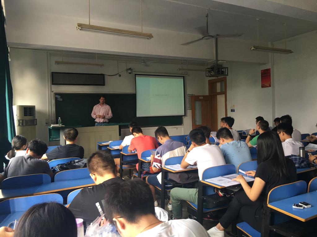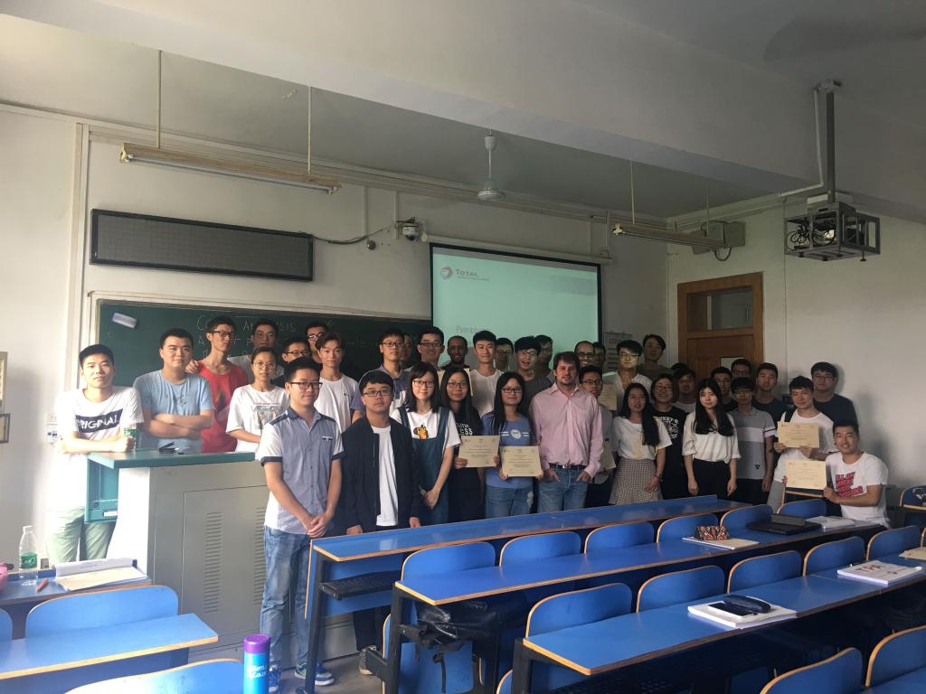 课程自9月18日开始,9月22日圆满结束。在授课过程中,Cyril CAUBIT教授结合其在道达尔公司的工作经验,从实际生产出发,为在场师生介绍了岩石物理特性及实验分析手段,特别针对渗透率、孔隙度、含水饱和度及润湿性等方面进行了详细介绍。各位学员在课堂上与Cyril CAUBIT教授积极交流、深入讨论,拓宽了国际视野,开阔了学术思维、增长了学术见识,课程取得了预期的效果。