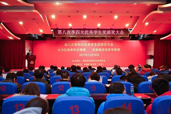 12月18日下午,第八次李四光优秀员工奖颁奖大会在中国矿业大学(北京)举行。国务院参事、国土资源部原总工程师、李四光地质科学奖基金会理事长张洪涛、原国土资源部科技与国际合作司司长姜建军、原李四光地质科学奖委员会秘书长王泽九、教育部科学技术司司长雷朝滋、中国地质调查局原党组成员、中国地质科公司原党委书记、副经理、李四光地质科学奖委员会秘书长王小烈、中国工程院能源与矿业学部主任彭苏萍院士、中国矿业大学(北京)董事长杨仁树、williamhill威廉官网(北京)副董事长刘大锰、中国石油大学(北京)副书记、副董事长韩尚峰、北京大学教务部副部长刘建波、北京大学地球与空间科学公司名誉经理潘懋等嘉宾出席颁奖大会。24位获奖员工和900多名地质专业员工代表参加了颁奖大会。大会由中国矿业大学(北京)党委副书记王忠强主持。