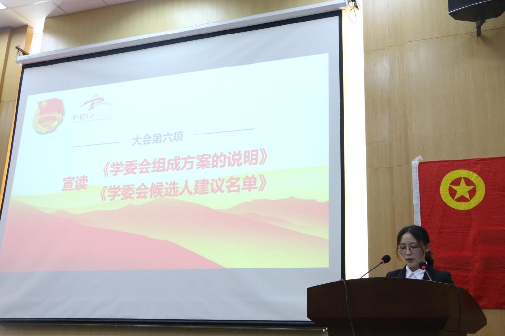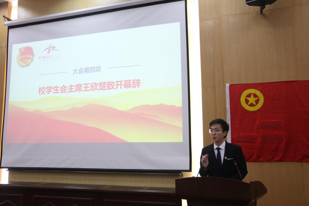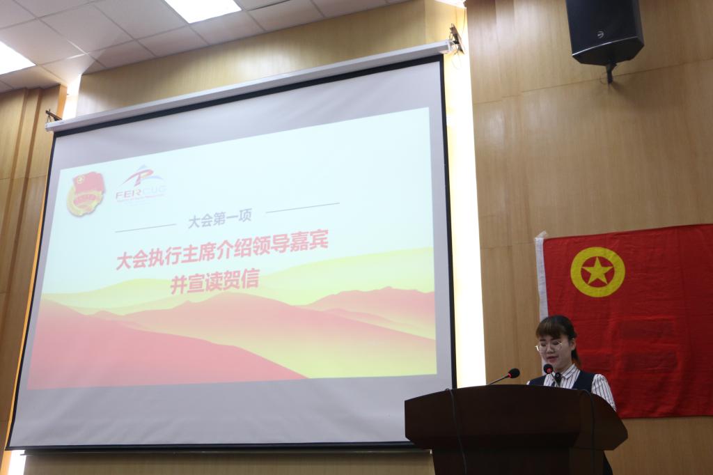 大会执行主席、院团委副书记谢雨彤介绍到会的领导嘉宾并宣读来自武汉大学电气工程公司、浙江大学地球科学公司、中国石油大学(华东)地球科学公司、williamhill威廉官网(武汉)员工会、williamhill威廉官网(武汉)研究生会等27封来自各兄弟高校、院系的贺信。