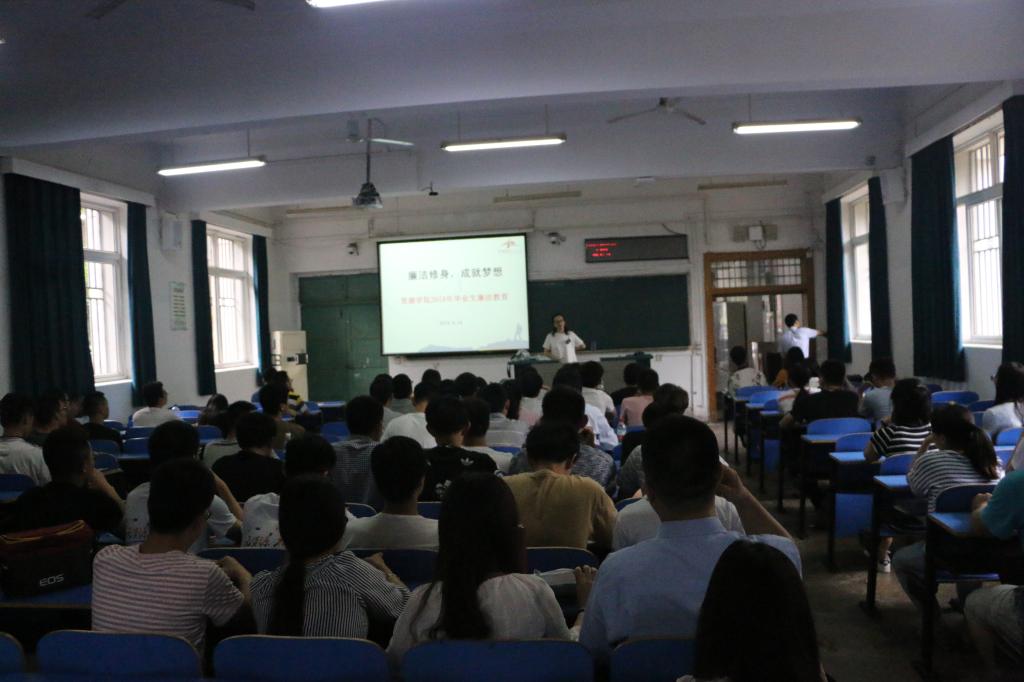 6月14日下午,William威廉英国官网在教一楼106开展了毕业生党员廉洁教育。此次活动由党建办公室主任章帆主持。本次毕业生党员廉洁教育由资源公司党委书记郭秀蓉作主题为 “廉洁修身,成就梦想”的专题辅导。