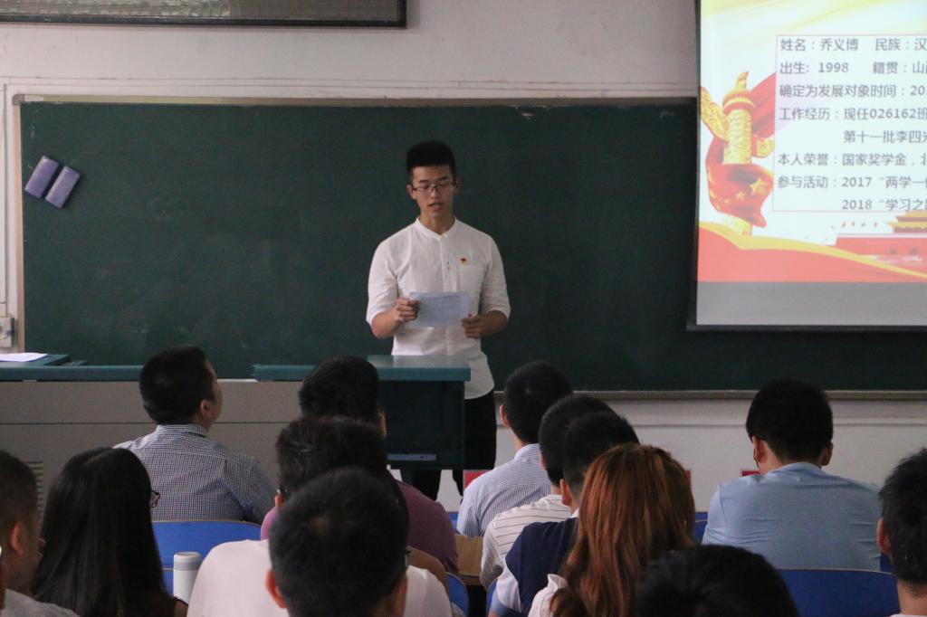 宣誓仪式结束之后,新党员代表乔义博进行发言,乔义博表达了加入党组织的激动与兴奋之情,同时表示自己会向优秀党党员学习,在未来的日子里“立鸿鹄志,做奋斗者;身体力行,躬身实践;坚守初心,脚踏实地”更好的服务于党和人民。