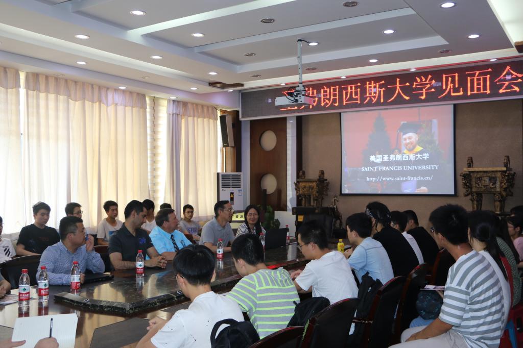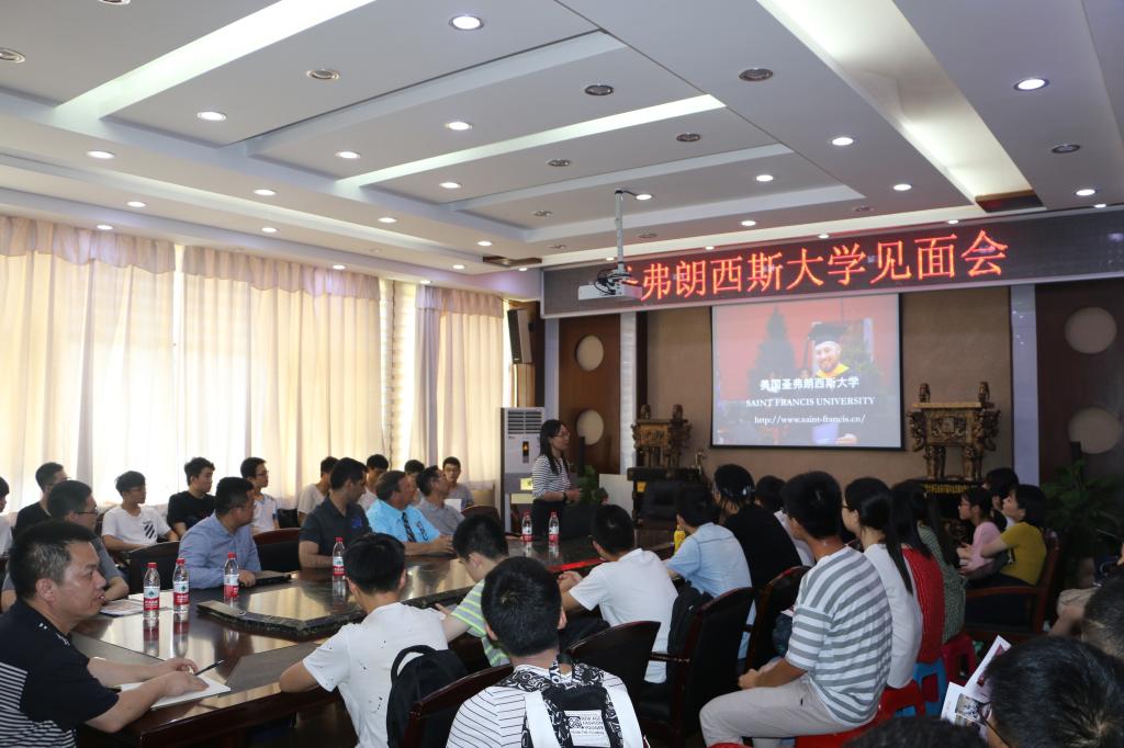 圣弗朗西斯大学何教授用中英文结合的方法从公司团队力量、人才培养、入学要求、学习费用、校园环境和社团活动等方面对公司进行介绍,并对公司小班制教学进行着重讲解。