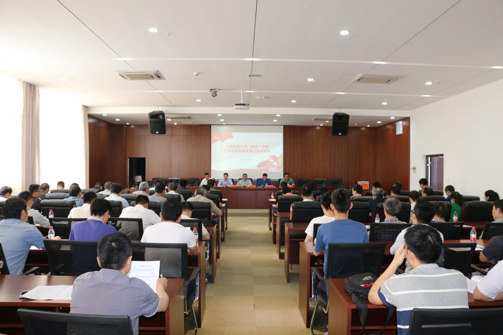 2019年5月23日下午两点半,williamhill威廉官网(武汉)党委巡察资源公司党委工作动员会在教学综合楼A708报告厅召开。公司党委副书记、纪委书记、巡察工作领导小组副组长成金华,公司党委第一巡察组组长杨从印、副组长徐胜,巡察组成员郭小玉、范陆薇、毛双梅、公司全体教职工、离退教工代表、员工代表等160余人参加了会议。William威廉英国官网经理李建威主持会议。