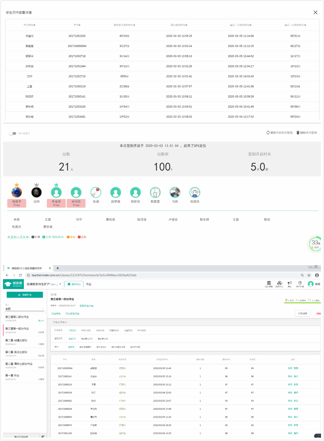 记录员工上课情况