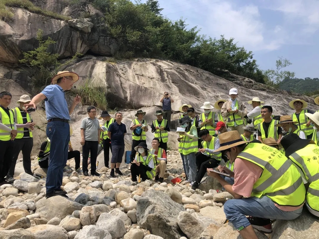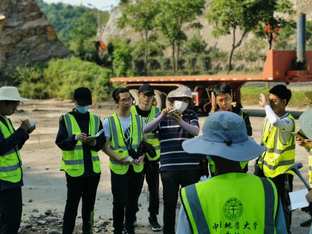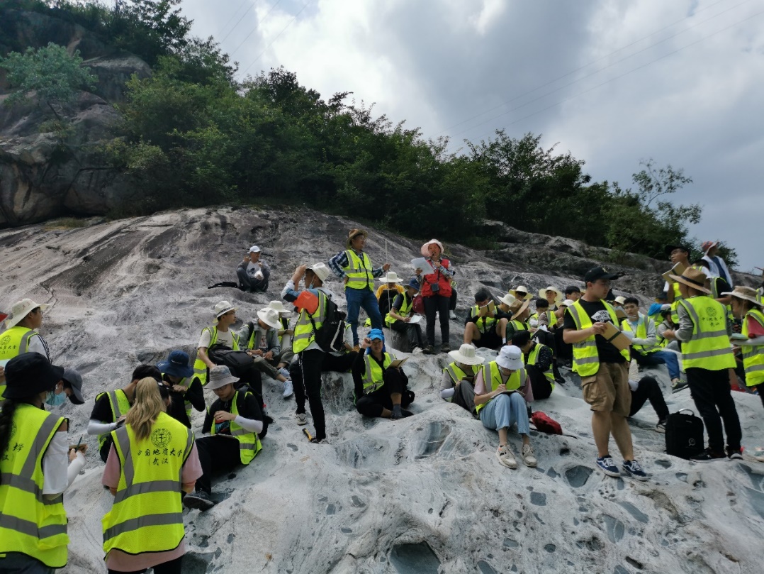 “在这炎炎的夏日,我头带草帽、身穿野外服、肩背地质包、包里放着罗盘、锤子、放大镜等地质人俗称的三大件,在媒人(实习指导老师)的带领下,与地质开始了一场令人终身难忘的初恋。”实习队蒋少涌老师在“武汉周边基础地质现象认知”讲座上动情说道。武汉黄陂、黄冈、黄石、咸宁都留下了资源人奋进的足迹和探寻的身影,在天堂寨水库湿地,同学们领略湖泊地质作用的沧海桑田;在黄石矿山公园,同学们感受到中国第一支大型地质勘探队(429队)的地质精神;在一个个风景名胜,同学们体悟到敬畏自然、天人合一的崇高情怀。经过本次实习,同学们在识证自然、初上征途中感悟地质;在蝉鸣为伴、锤身炼心中收获成长;在步入云林、求石古今中漫步自然,既掌握基本地质技能,也培养地质思维,更亮出资源学子昂扬的精神风貌。